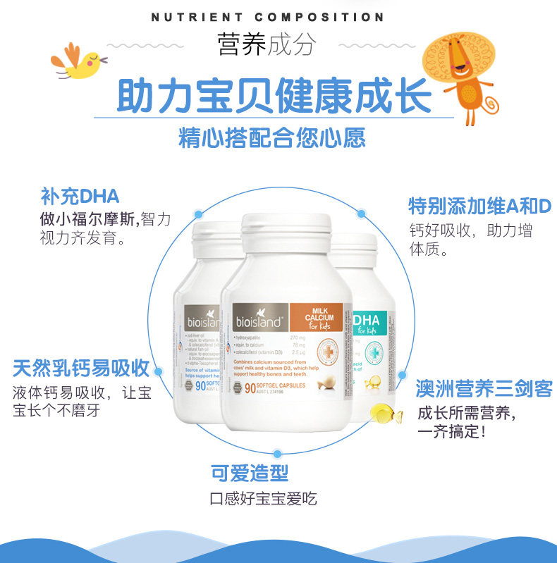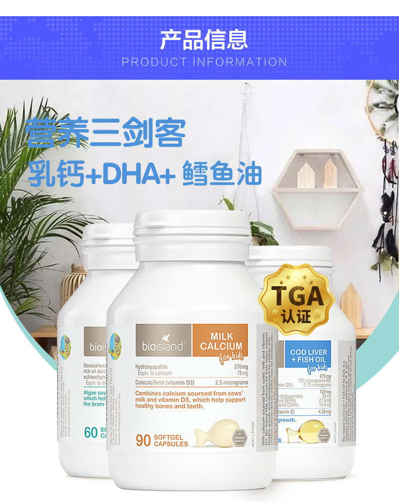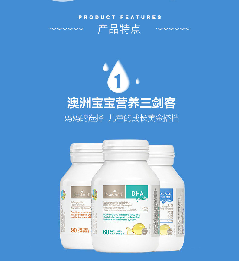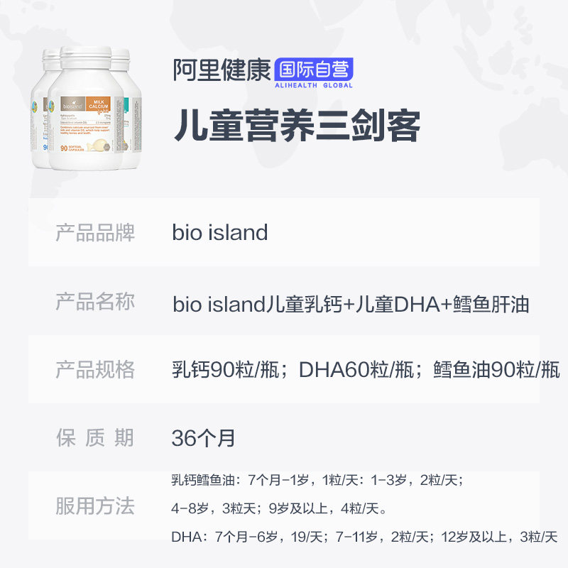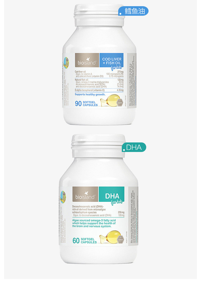 Австралийское био -остров питание Три -мечсман треска нефть печень+масло морских водорослей dha+жидкое молоко кальций
