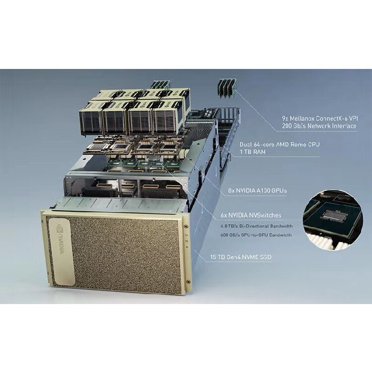 Nivdia DGX-A100 Два 64 ядерных драконов, 8 A100 ГПУ