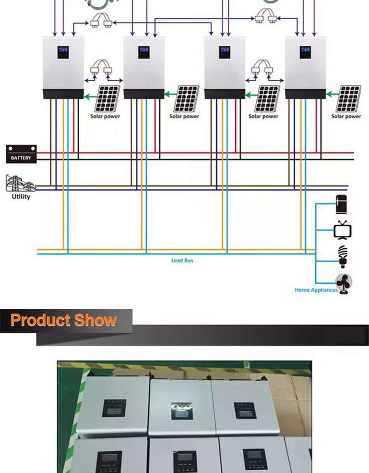 3KVA 24VDC 220V/110VAC Солнечная дифференциальная зарядная зарядка Гибридная смешанная машина 50A PWM -контроллер