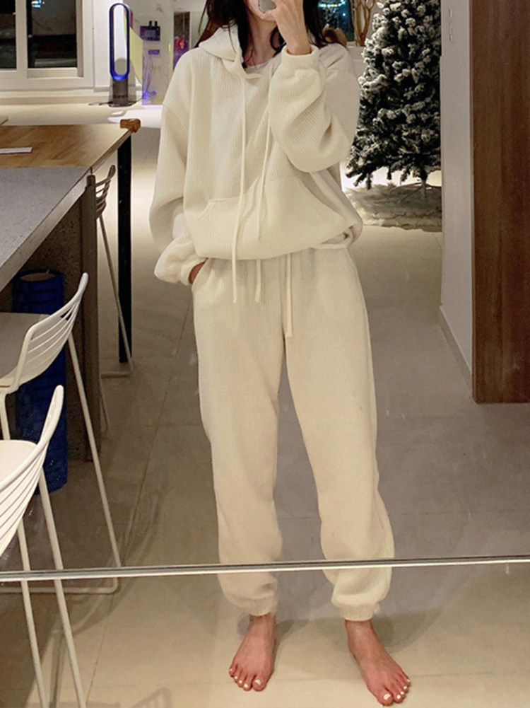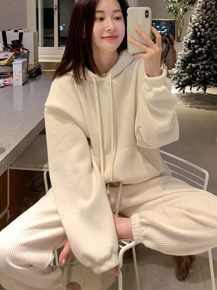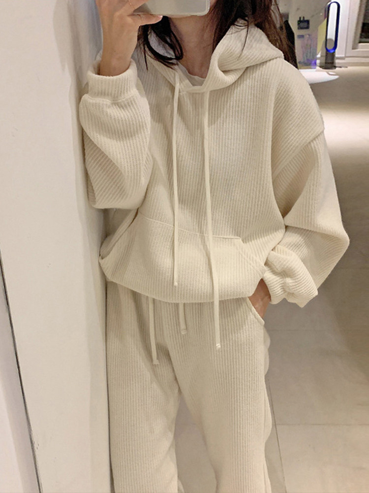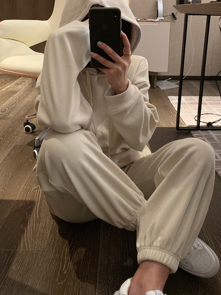 Осенняя толстовка с капюшоном, штаны для отдыха, в корейском стиле, коллекция 2021, простой и элегантный дизайн, эластичная талия