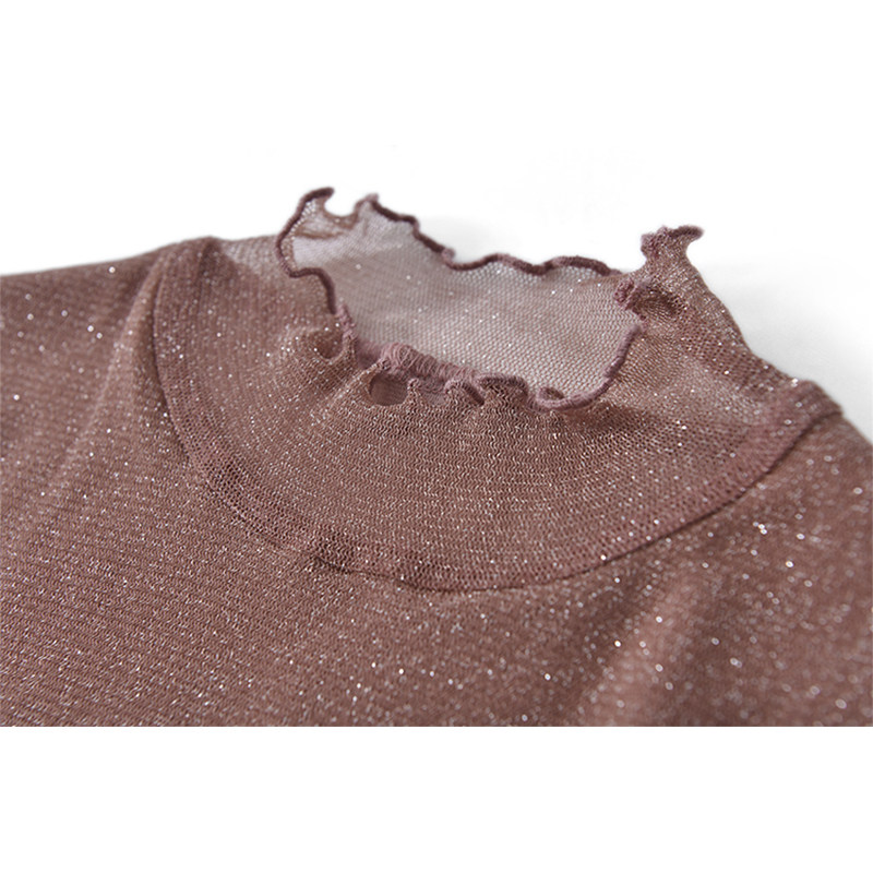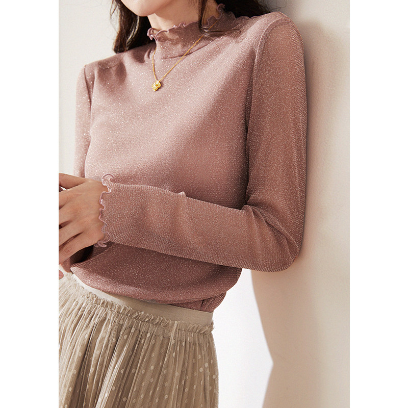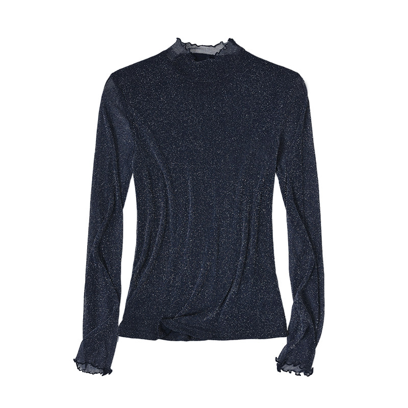Качество Миджиа вливается в галактику и очень красиво!Блестящий шелковой кружевной воротник растягивая тонкая базовая рубашка для женщин -