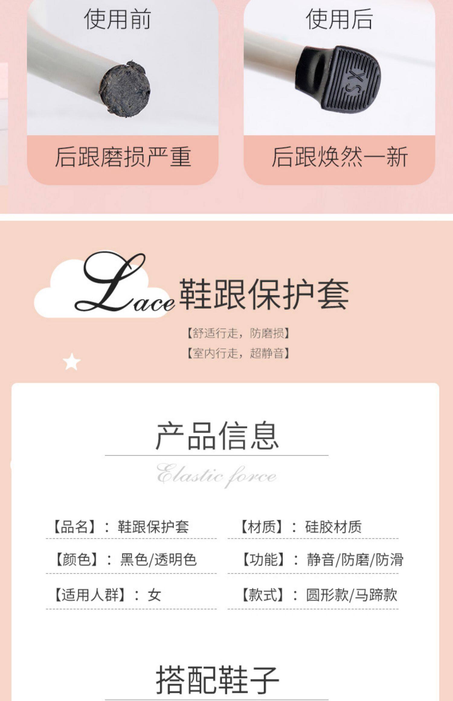 - 2 пары прозрачного квадратного диаметра S-мм мм (рекомендуется использовать каблук 10-11 мм)
