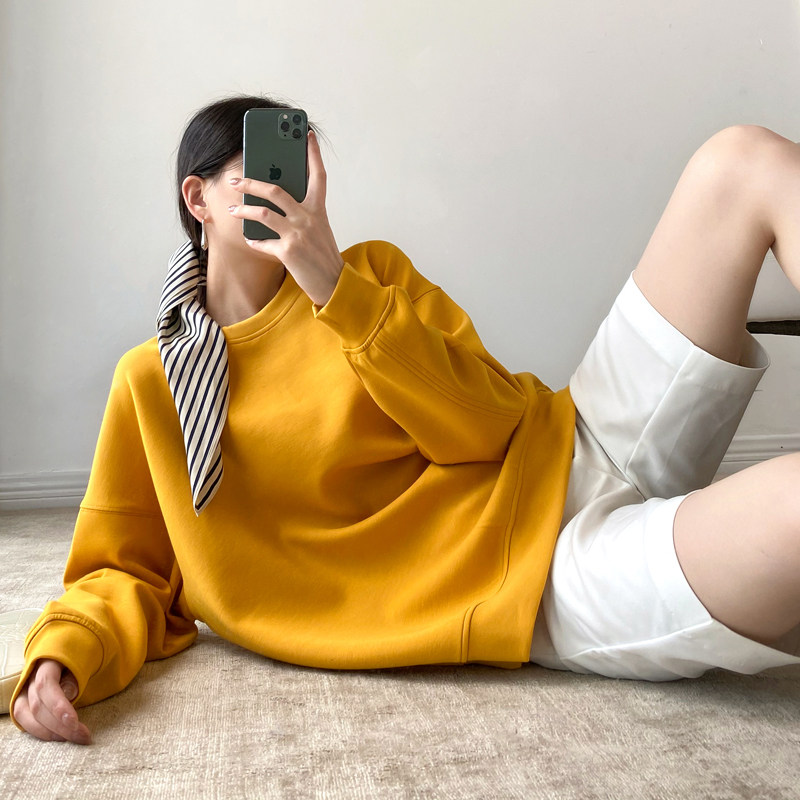 Импортная осенняя толстовка с круглым воротником, в корейском стиле, свободный крой