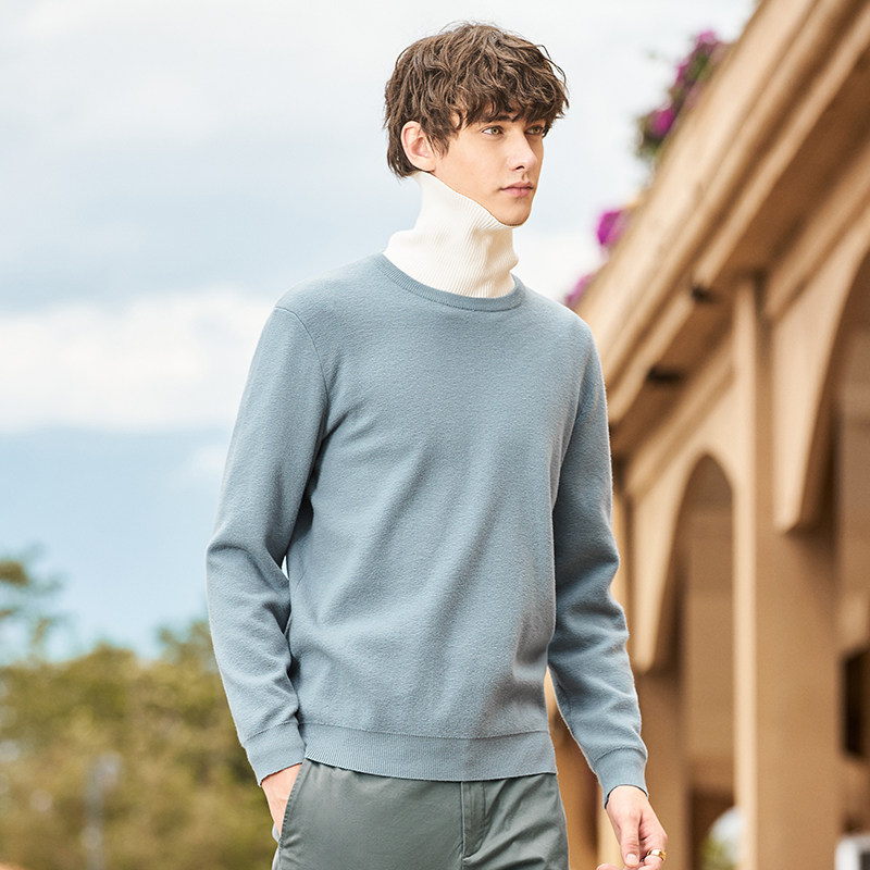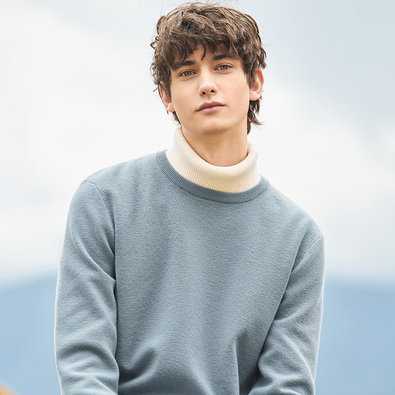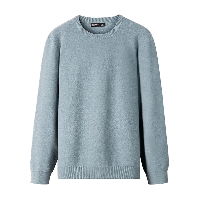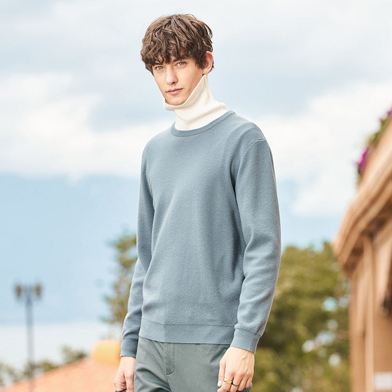 Осенняя утепленный лонгслив, мужской однотонный свитер, круглый воротник, в корейском стиле