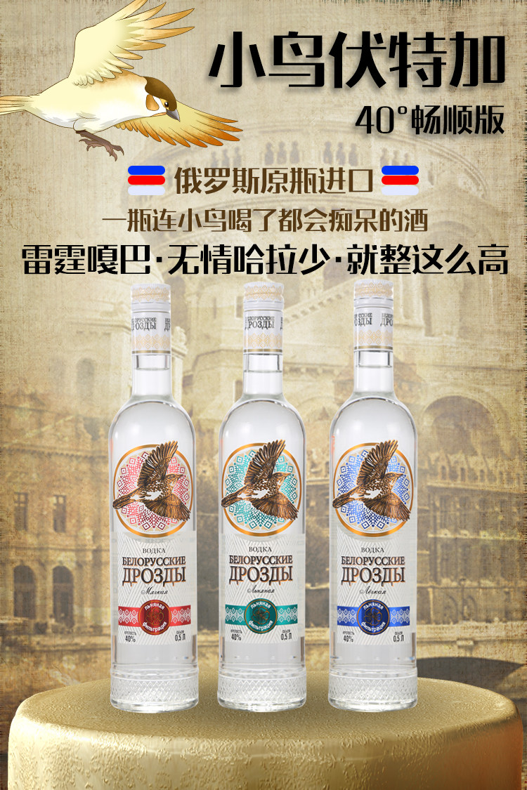 Российская импортная птица водка вино вино вино 40 градусов Оригинальный бар Океанский вино 500 мл Микро барендент