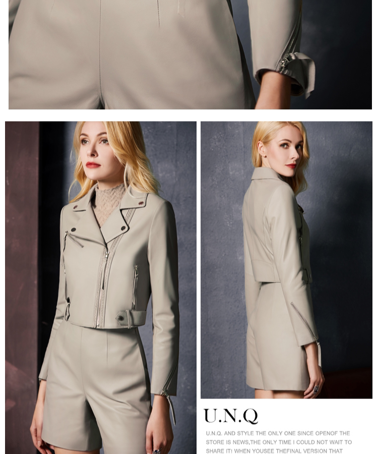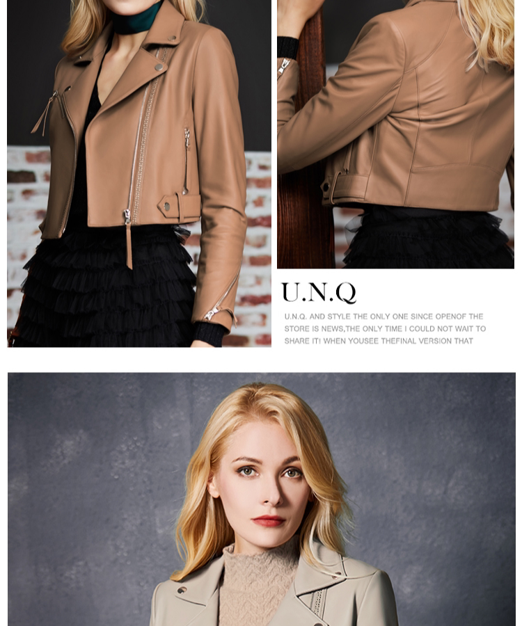 В силах U.N.Q показаны ноги, высокая роскошь, тяжелые рабочие с ярко -кожей, короткие локомотивы, автомобильная кожаная одежда, внешняя куртка женщин