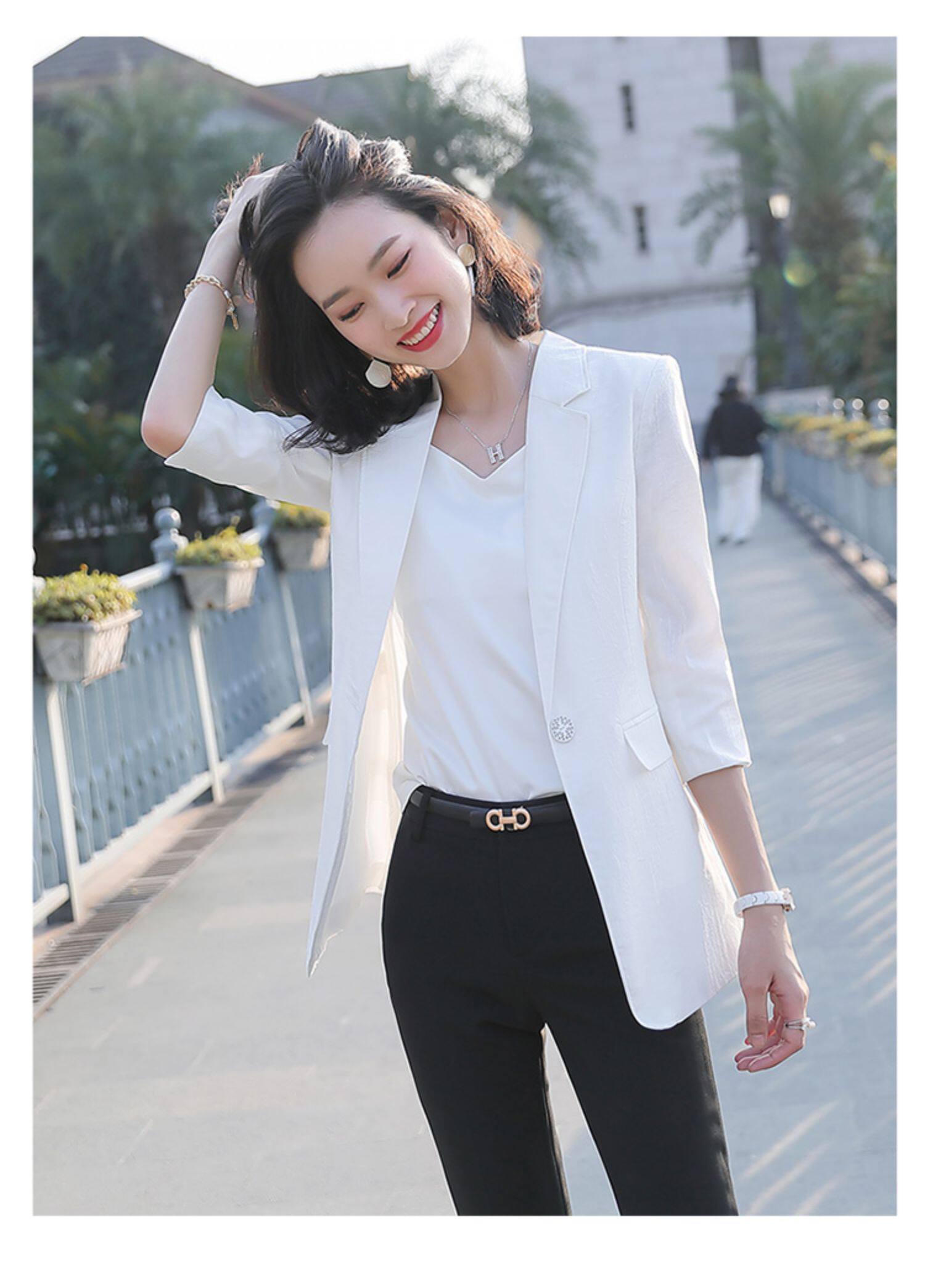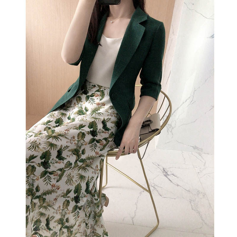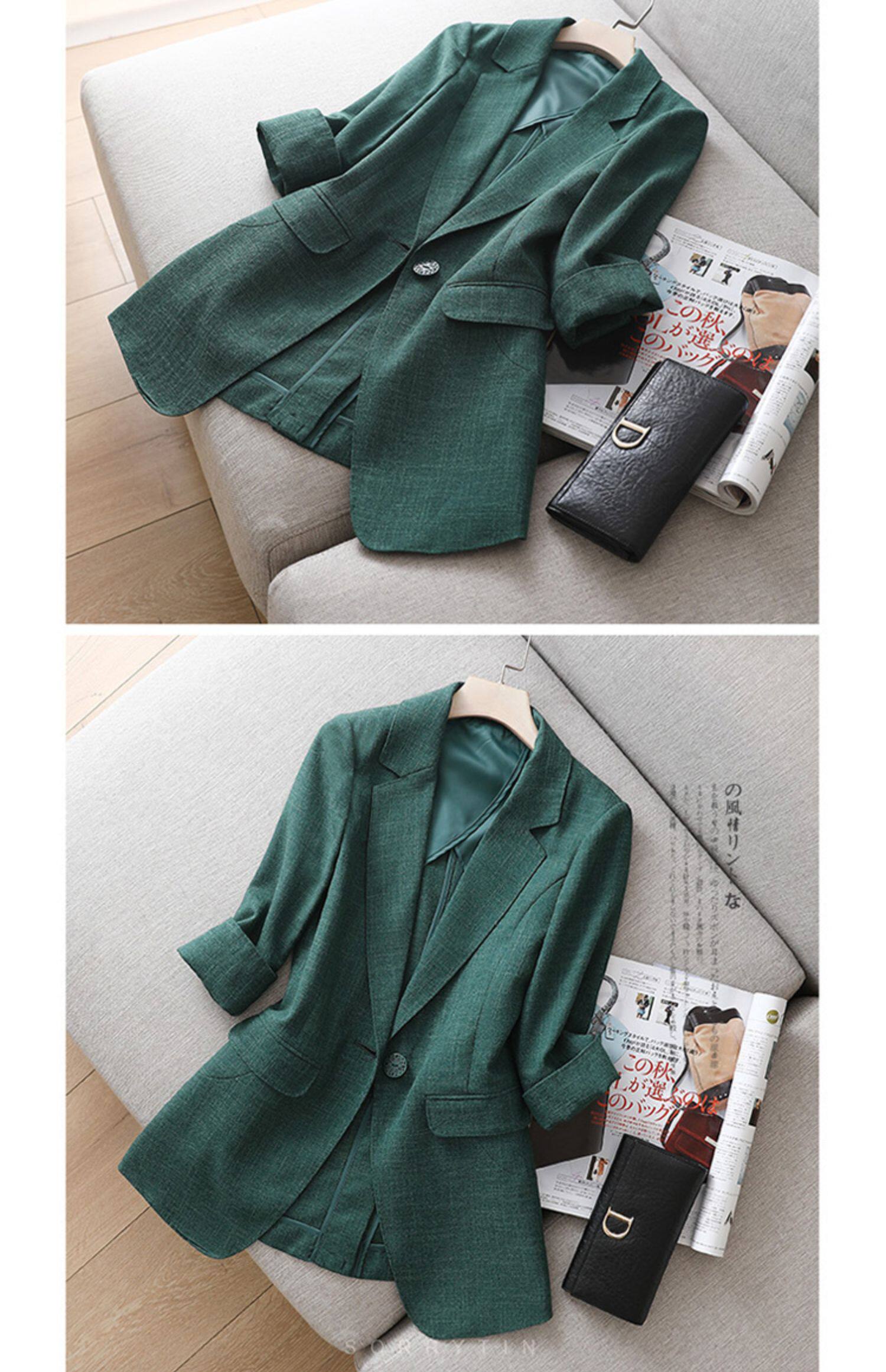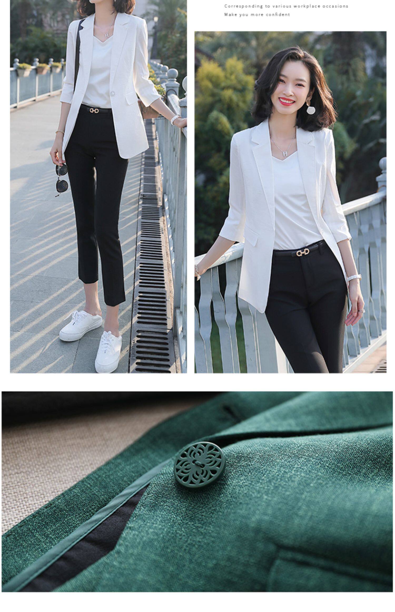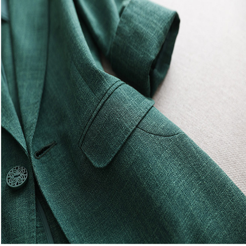 Элегантный длинный пиджак классического кроя, средней длины, из хлопка и льна