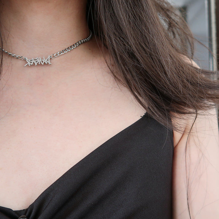 Брендовое ожерелье с буквами, небольшая цепочка до ключиц, дизайнерский чокер, в стиле панк