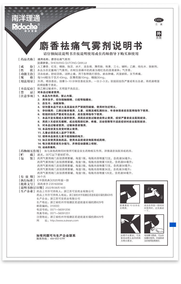 Наньянг литонг мускус анти -Qi туманное мышечное спрей -мышцы