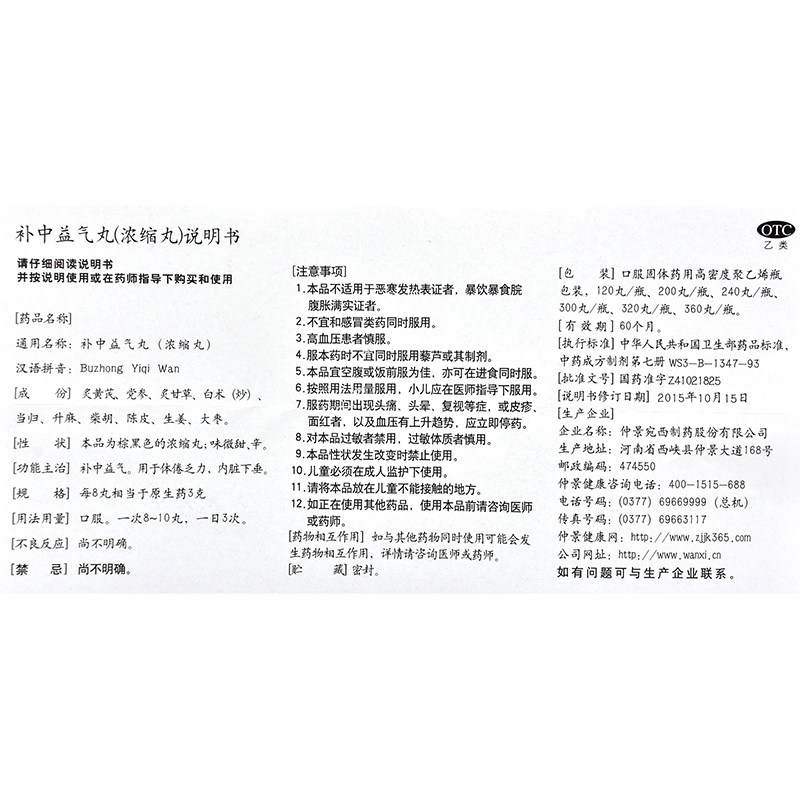 仲景 Buzhong Yiqi Pill 300 Pill/Box Pharmaceutical Dehifity и Anus селезенки падают в пищеварение плохие органы.