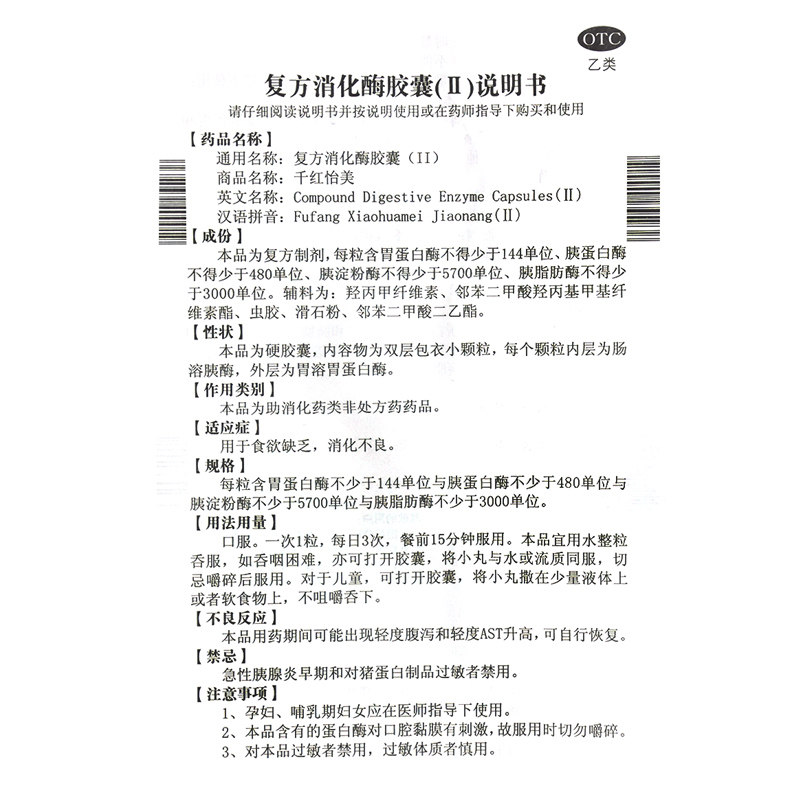 千红 Фармацевтическая капсула пищеварительного фермента (ii) imei.