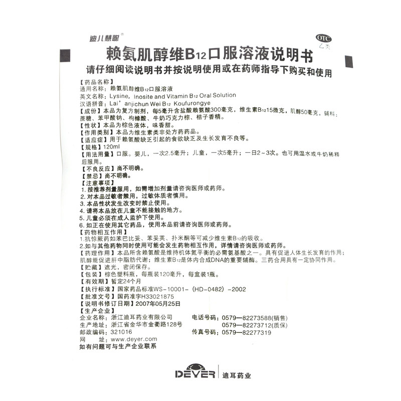 迪儿慧聪 Лишамидитол витамин B12 раствор перорального раствора 120 мл лизина не хватает роста и развития детей