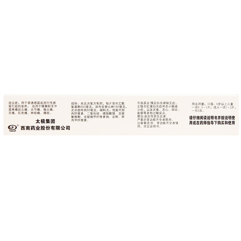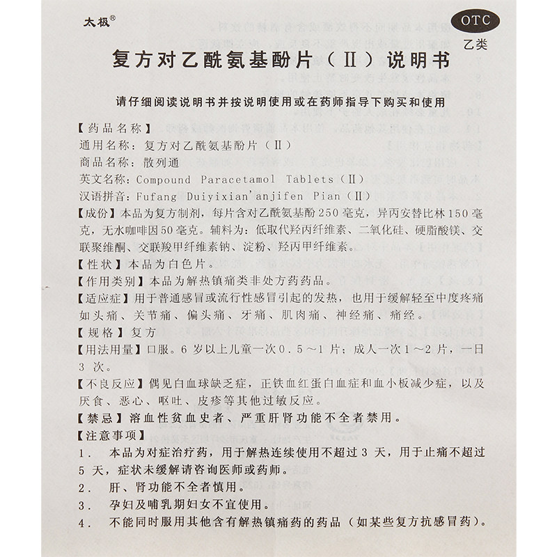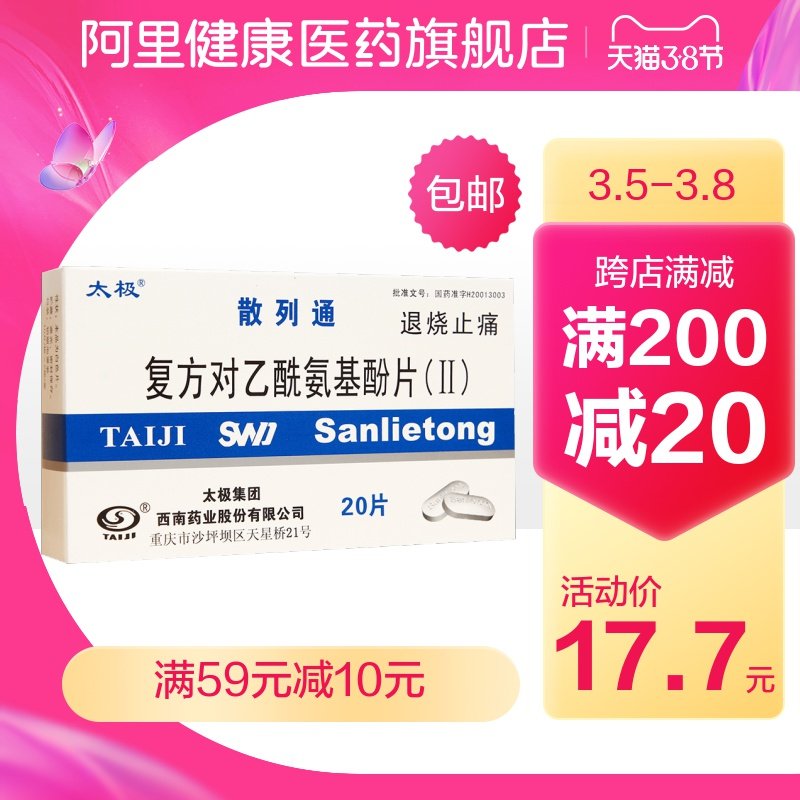 太极 Таблетки соединения ацетаминофена Шашатонг (Ⅱ) 20 таблеток/коробка от легкой до умеренной боли, лихорадки, головной боли