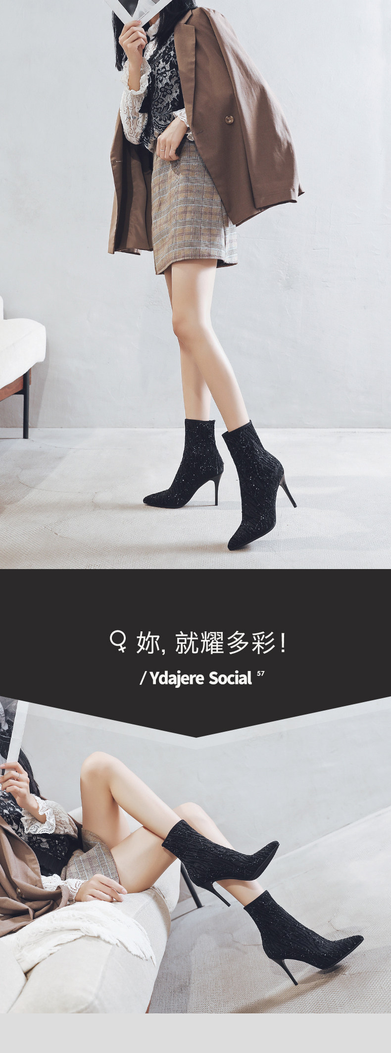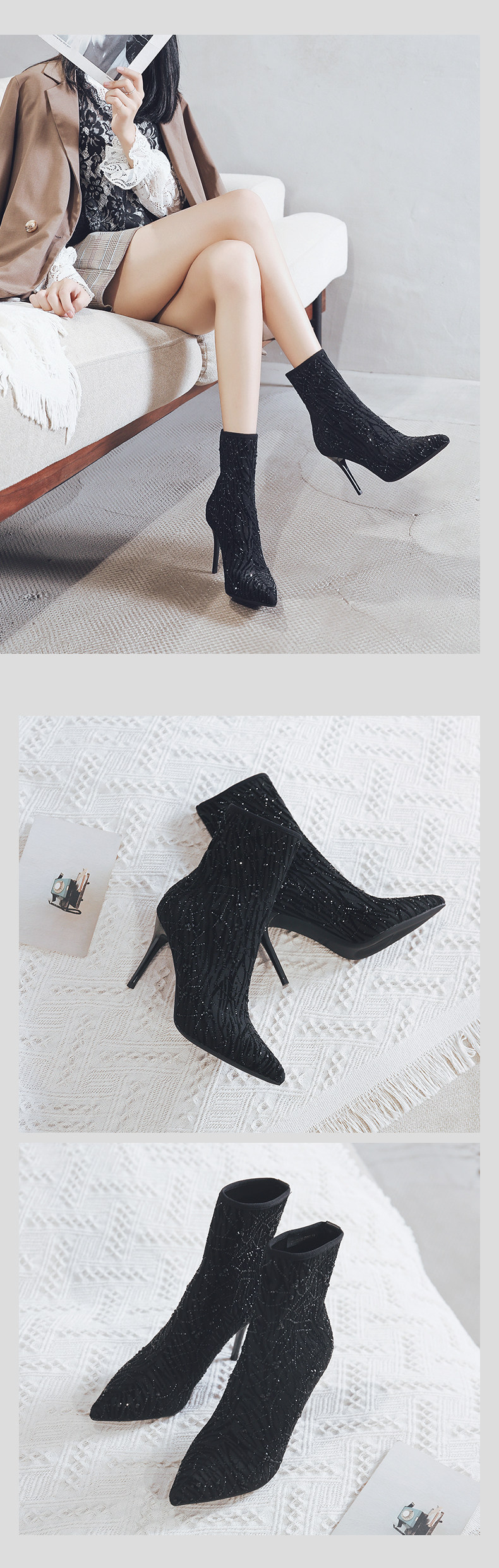 Демисезонные универсальные короткие сапоги с заостренным носом на высоком каблуке, 2020, средней длины
