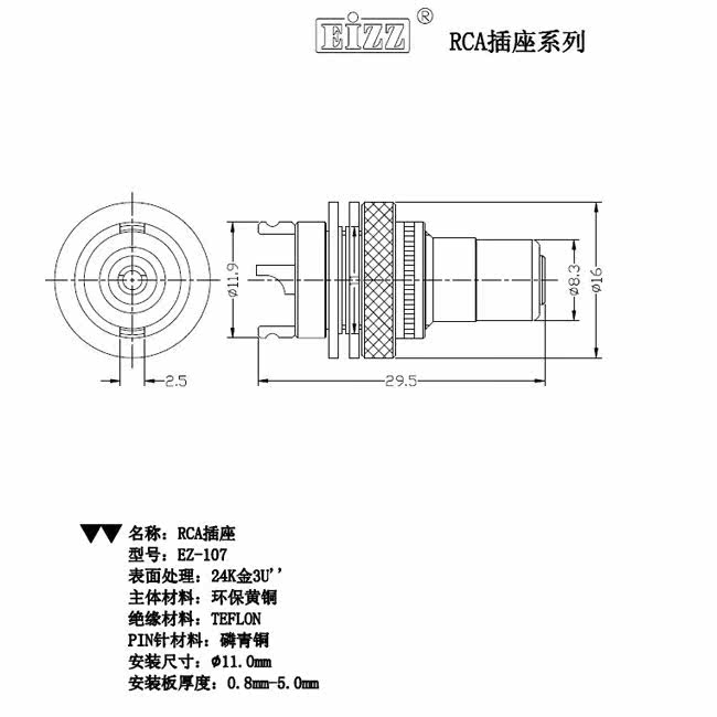 Eizz Boutique Lotus Mother Seat RCA Signal Phosphorus, бронзовое покрытие Real Golded Complete Scocket EZ-107
