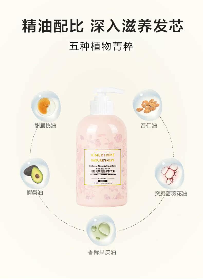 Восстанавливающий кондиционер с розой в составе, питательная эссенция, пряди волос