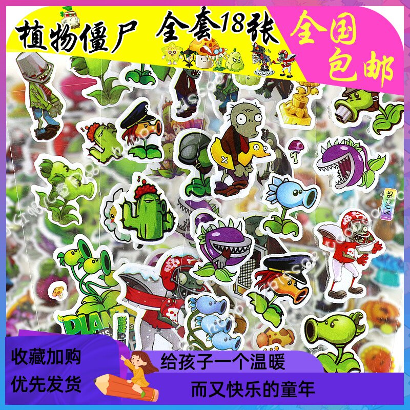 Детская мультяшная наклейка, растения против зомби, трехмерные наклейки, 3D