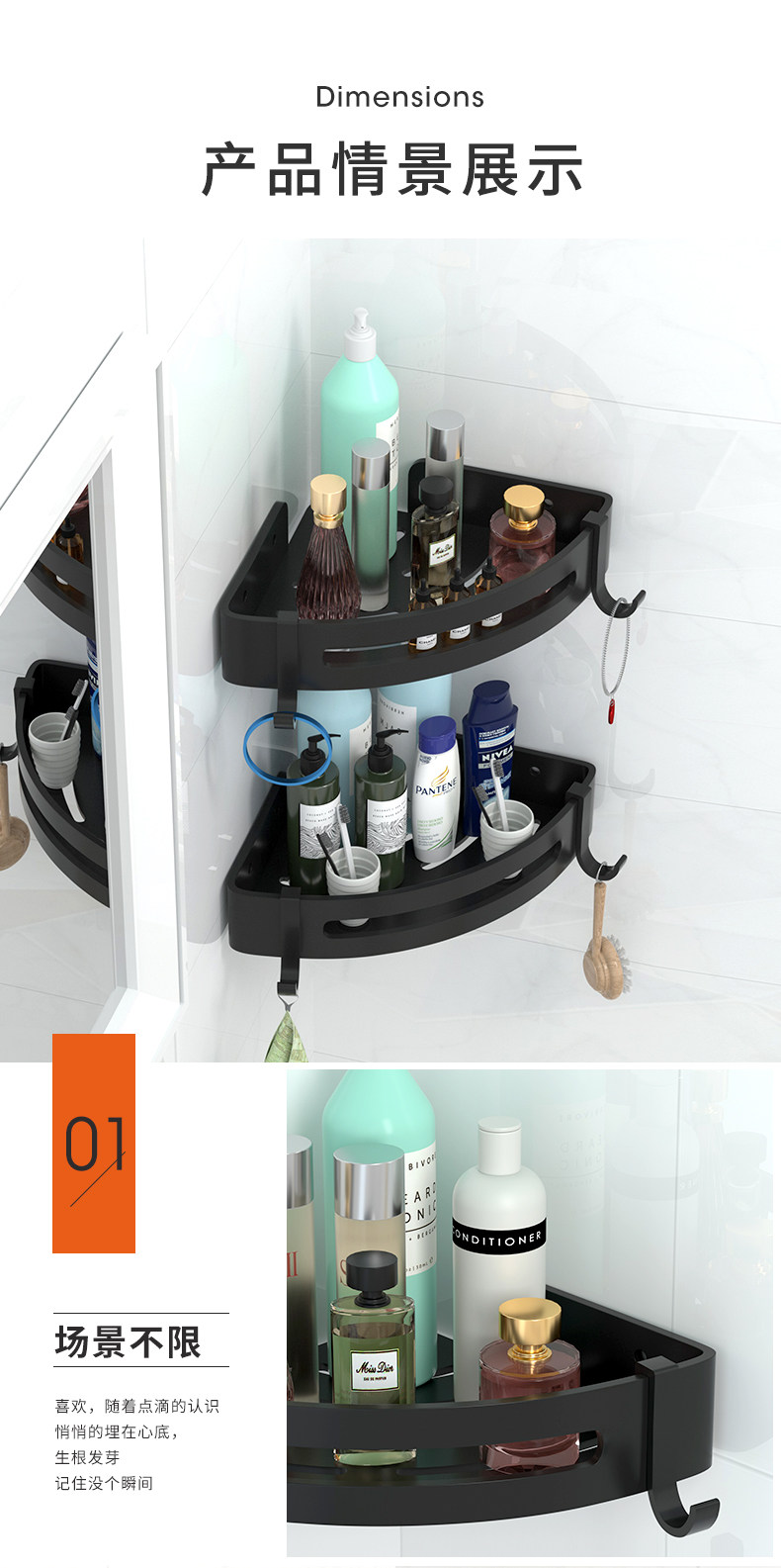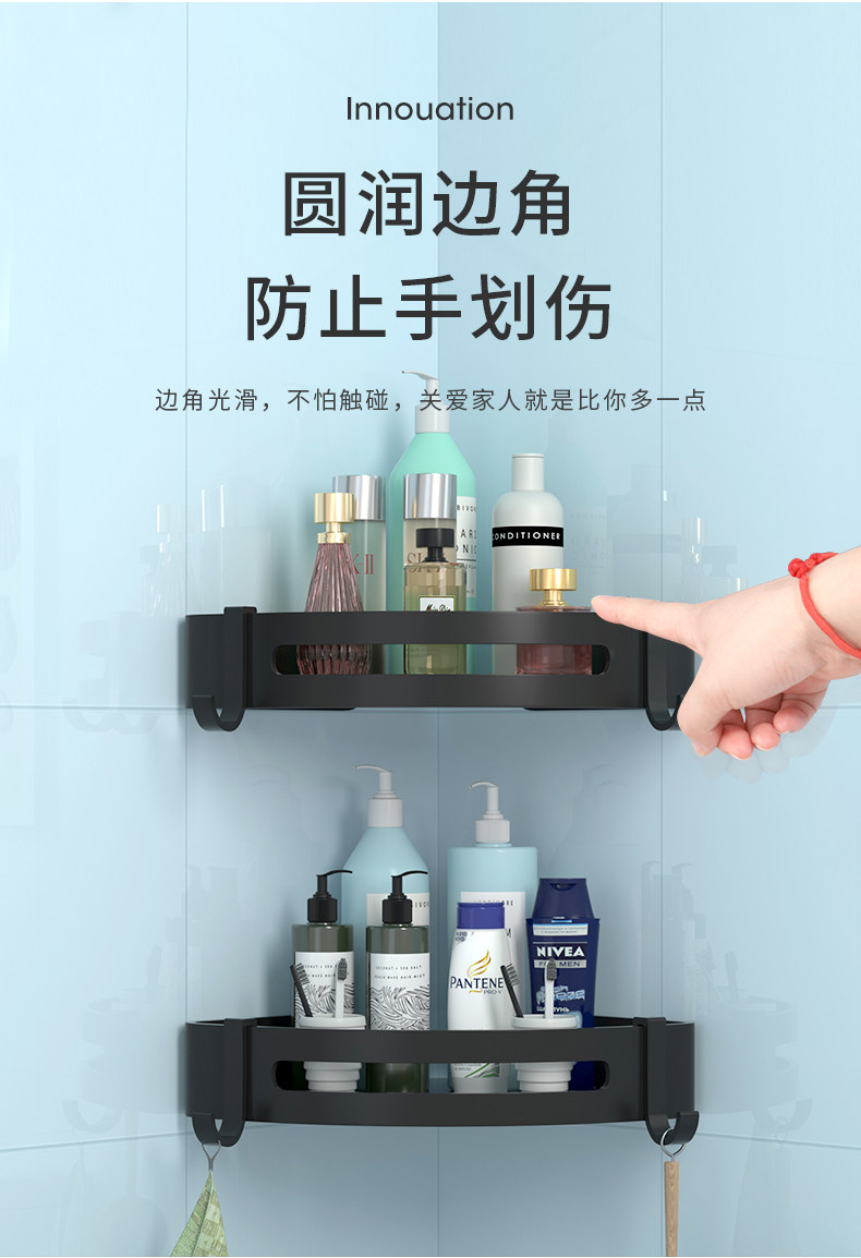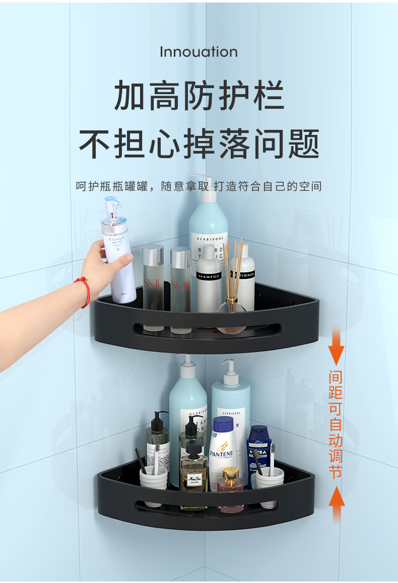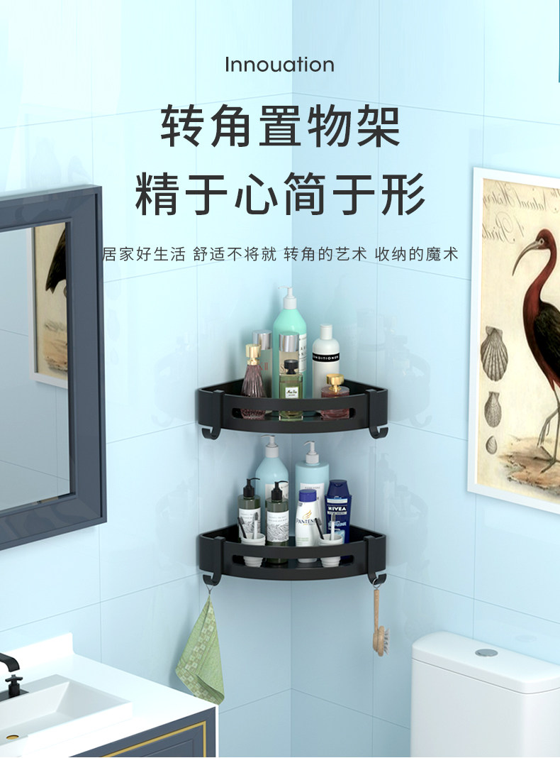 [浴室墙上托架厨房转角壁挂置物架三脚架卫生间玻璃三角拐角免打孔]