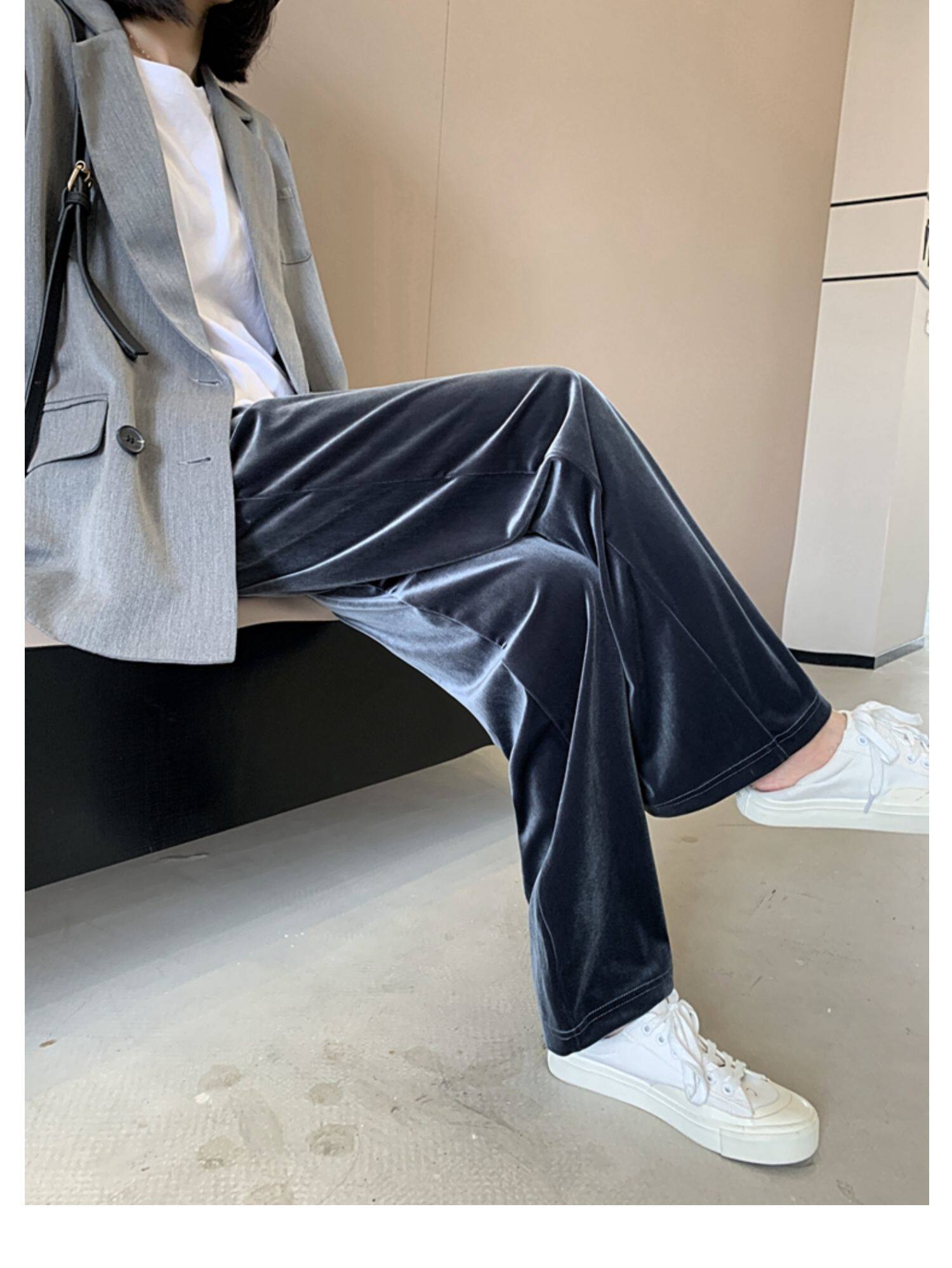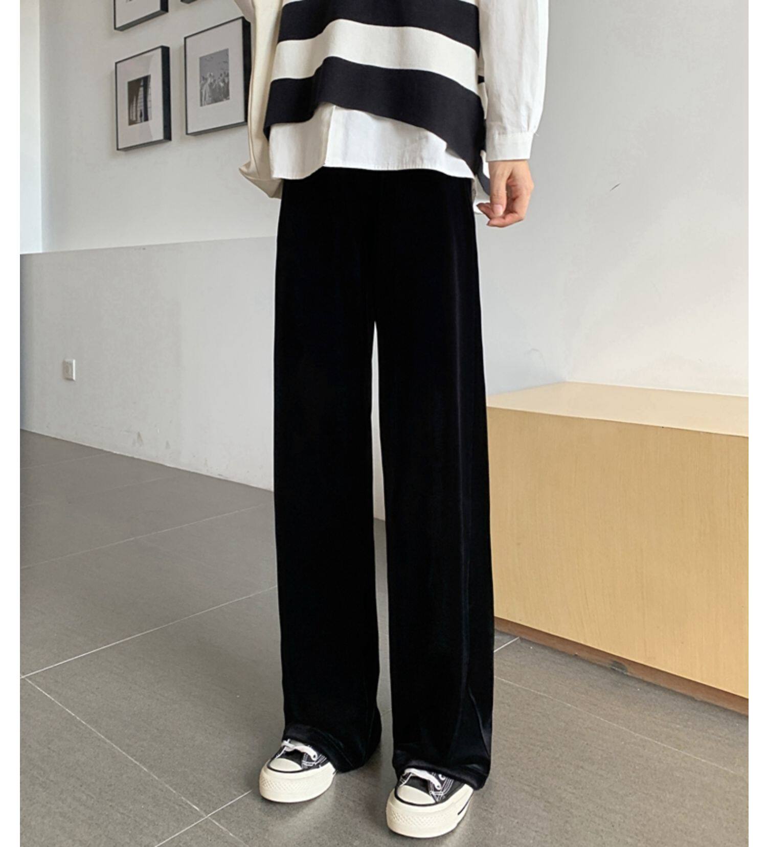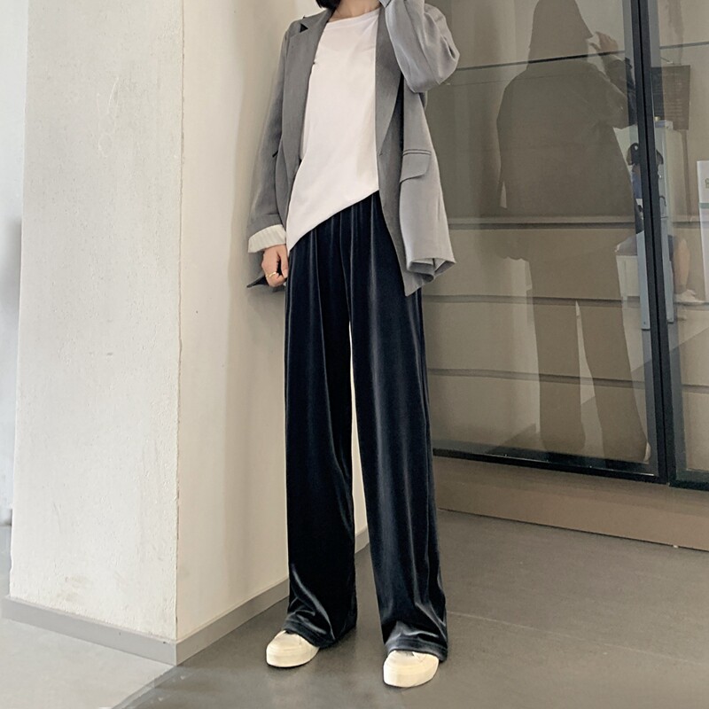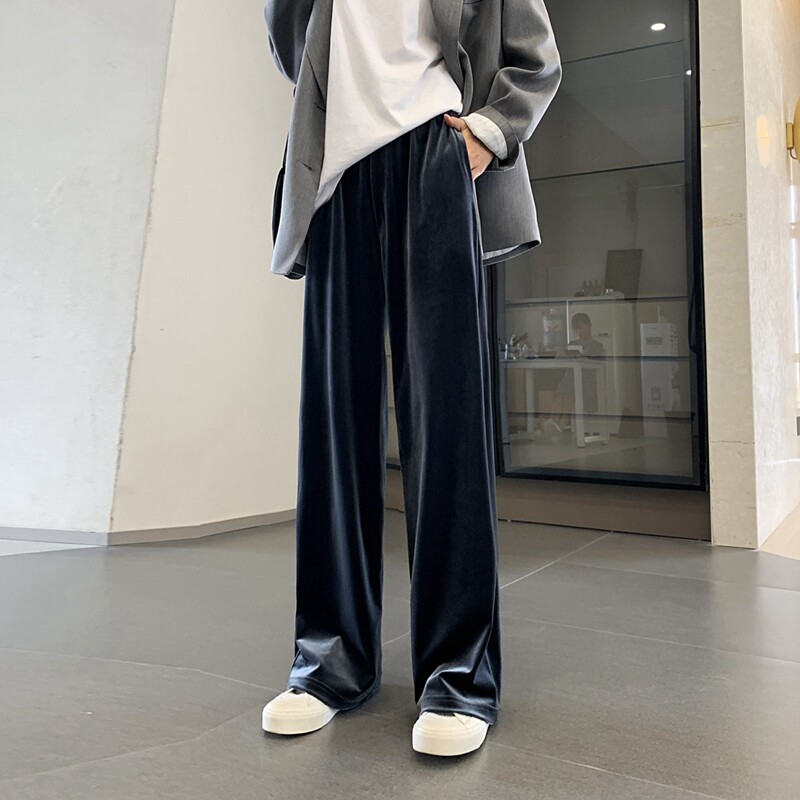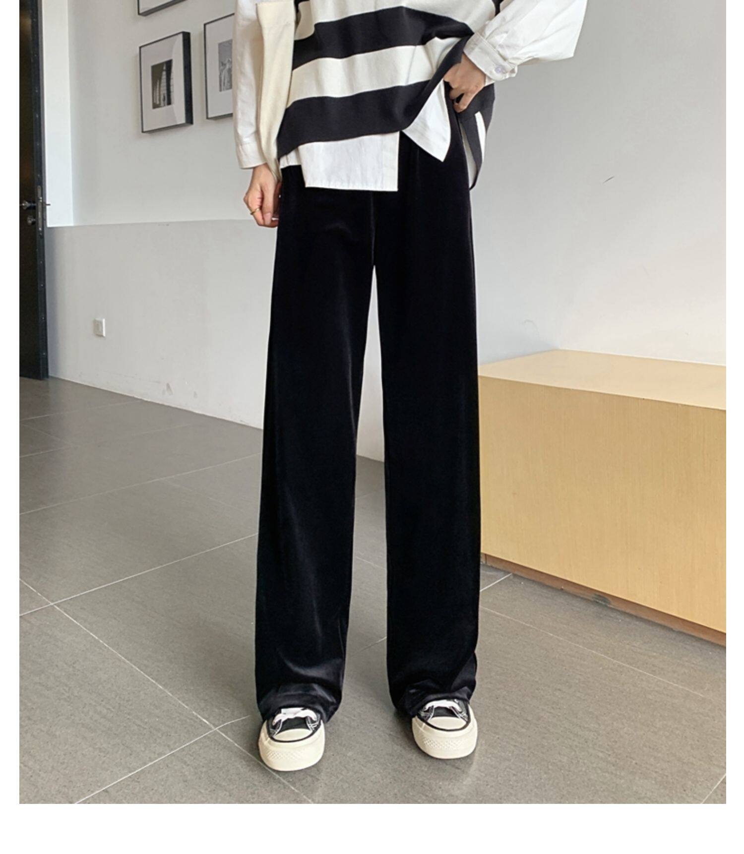 Тонкие бархатные штаны, высокая талия, свободный прямой крой