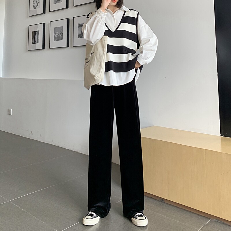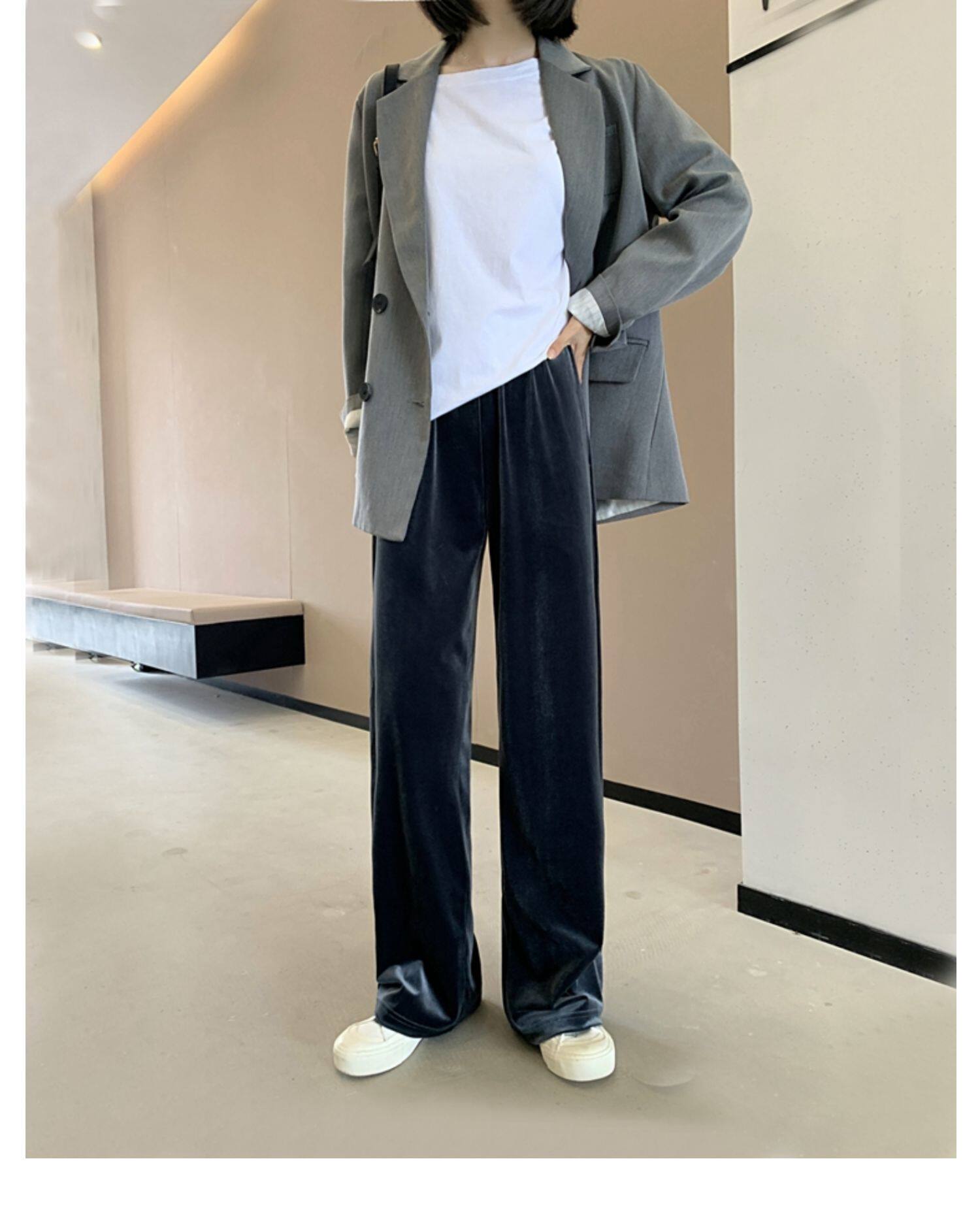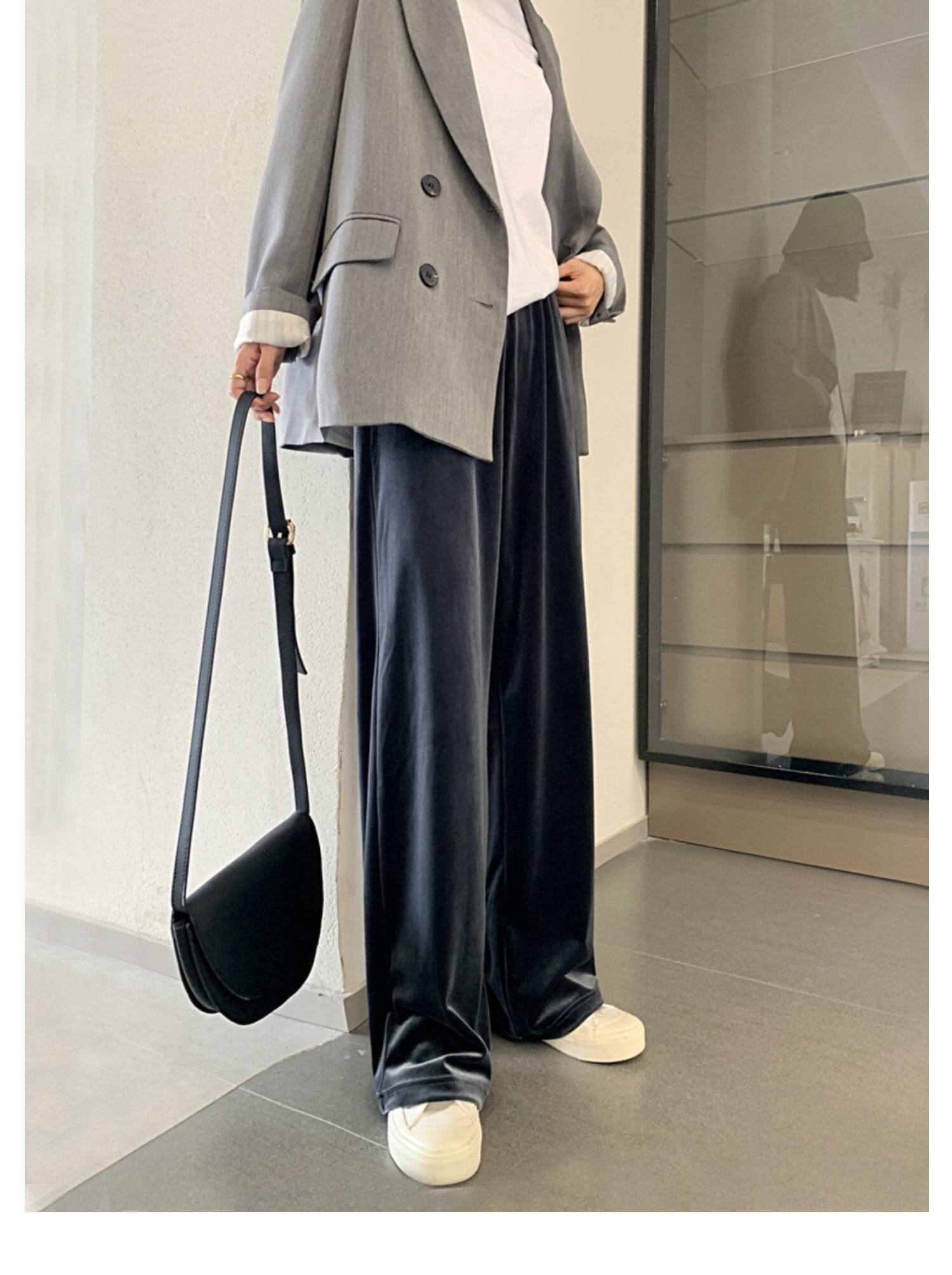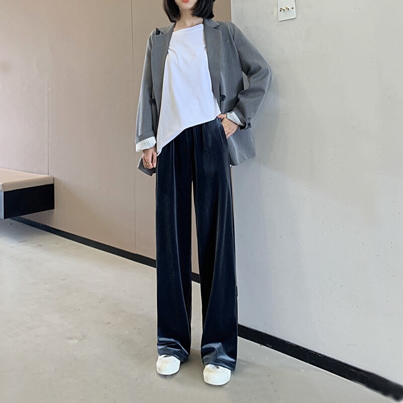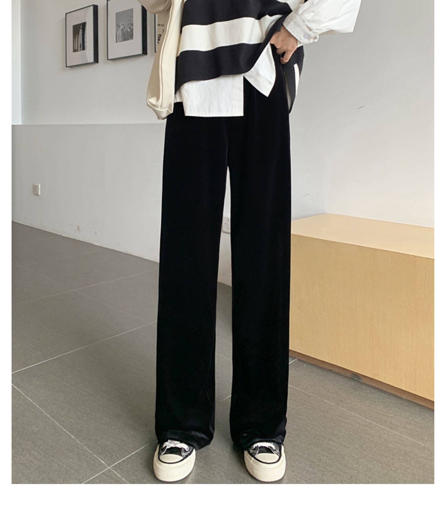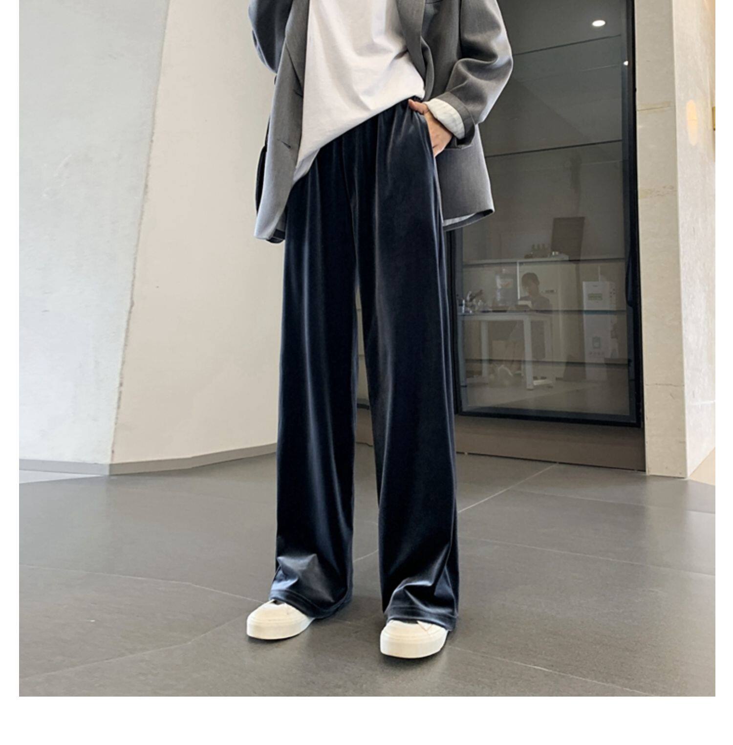Тонкие бархатные штаны, высокая талия, свободный прямой крой