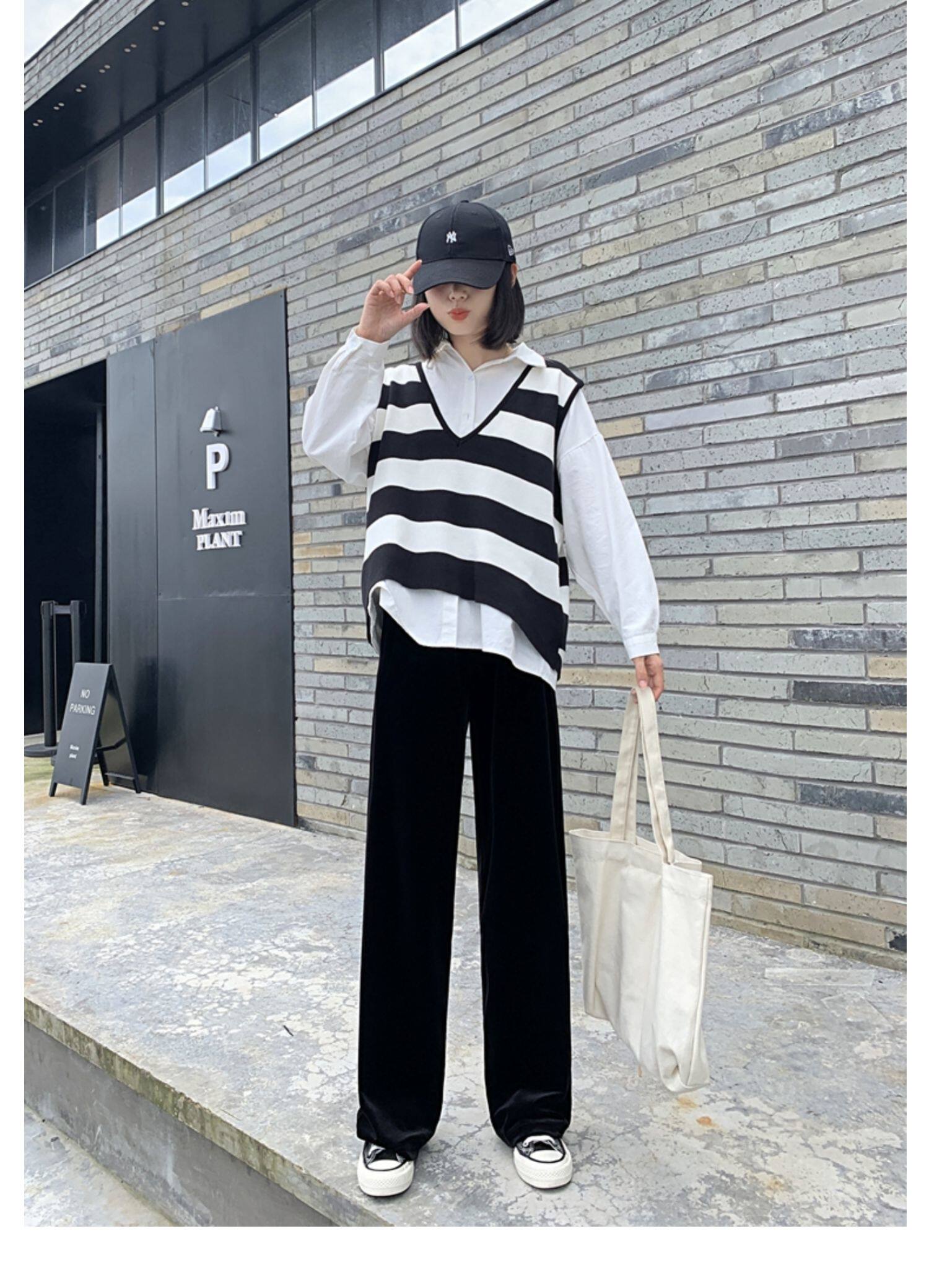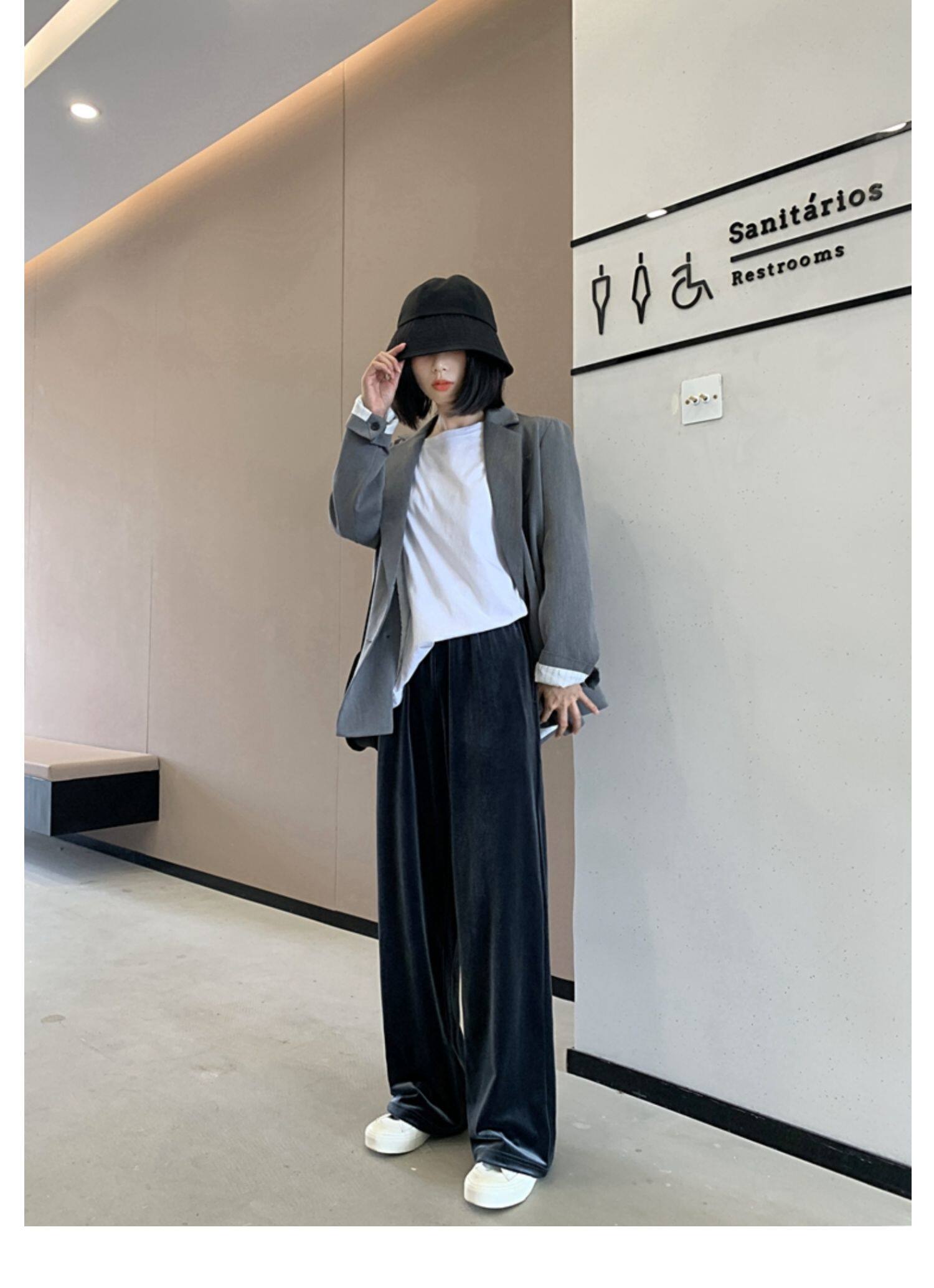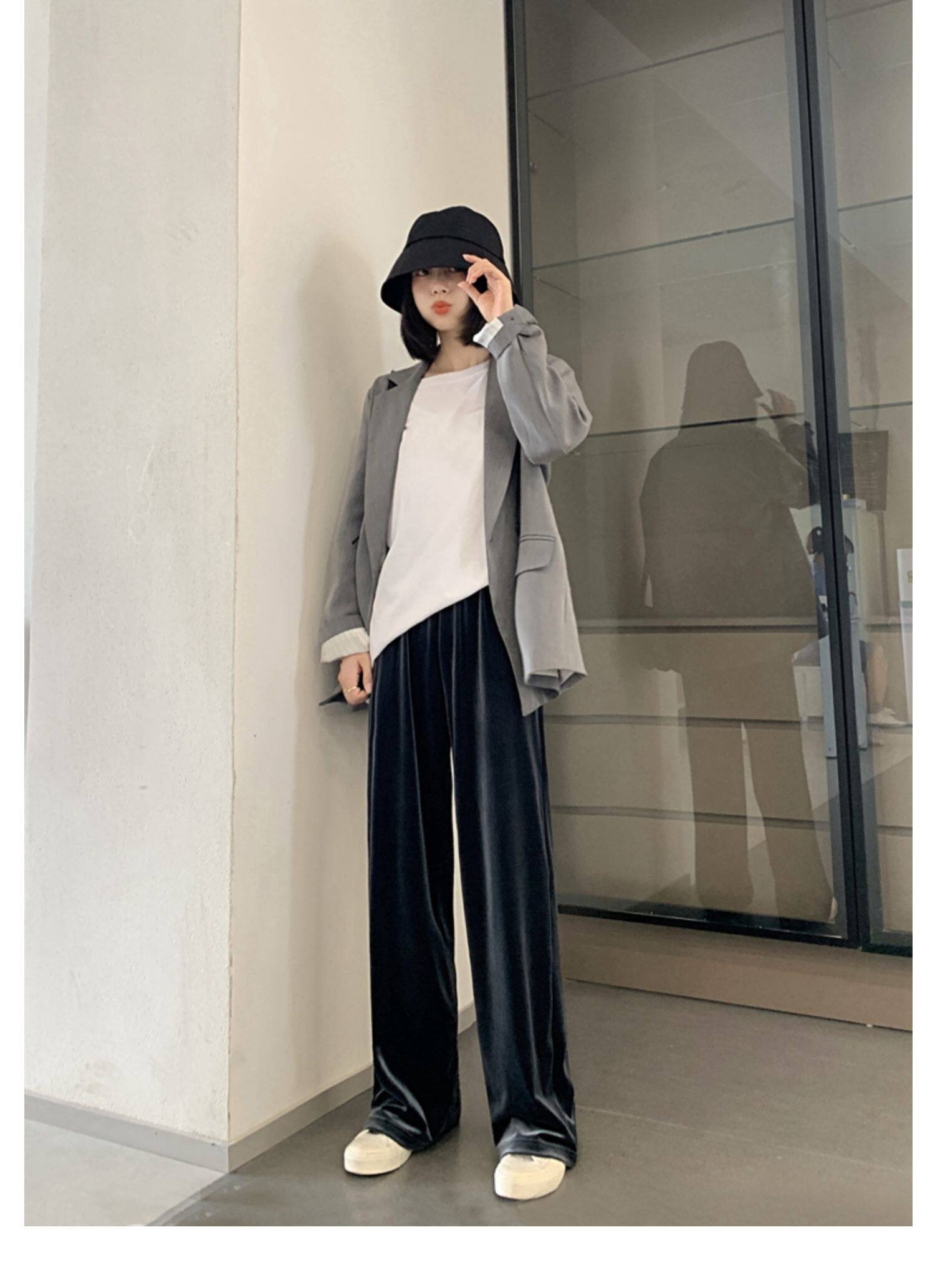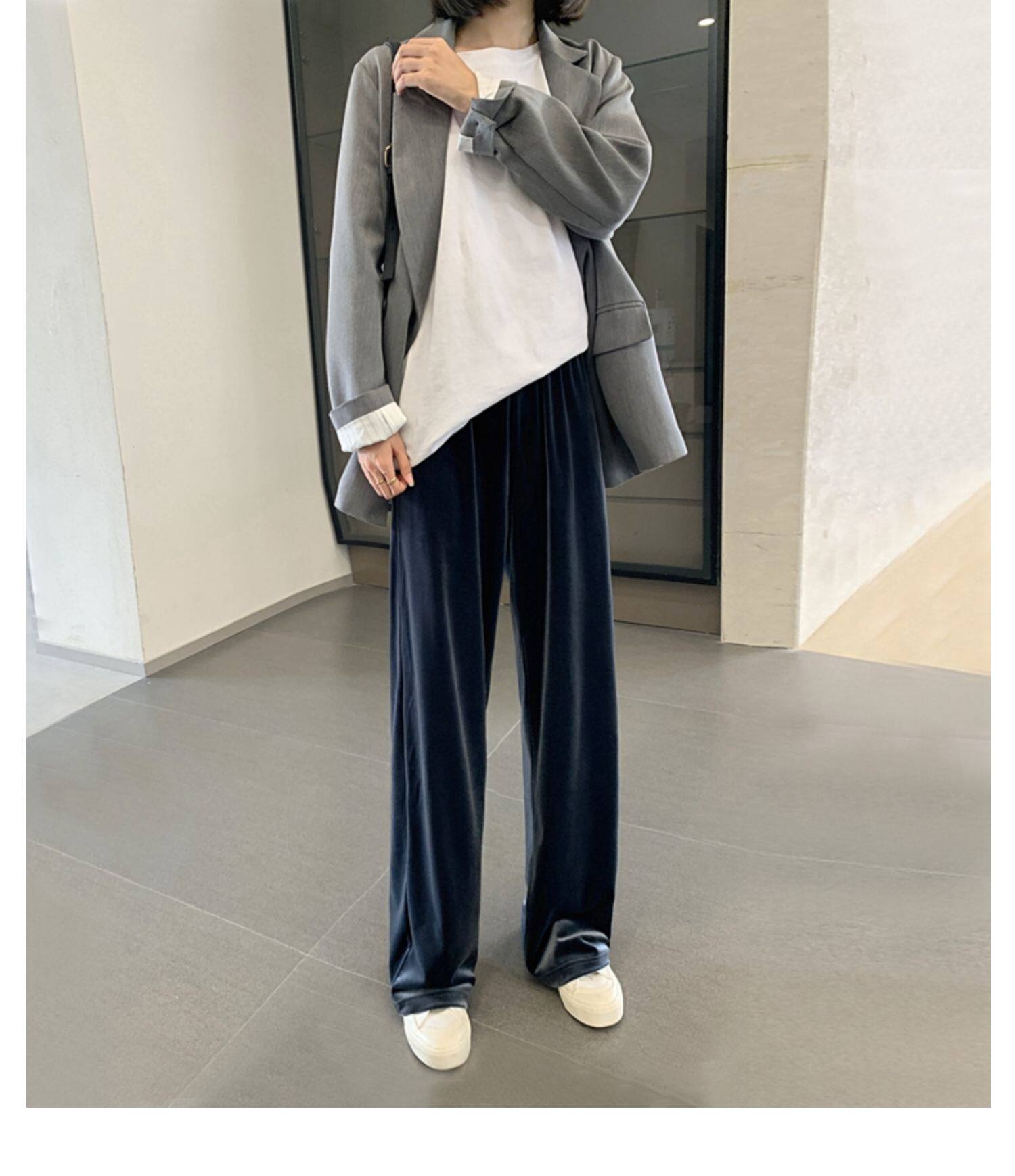 Тонкие бархатные штаны, высокая талия, свободный прямой крой