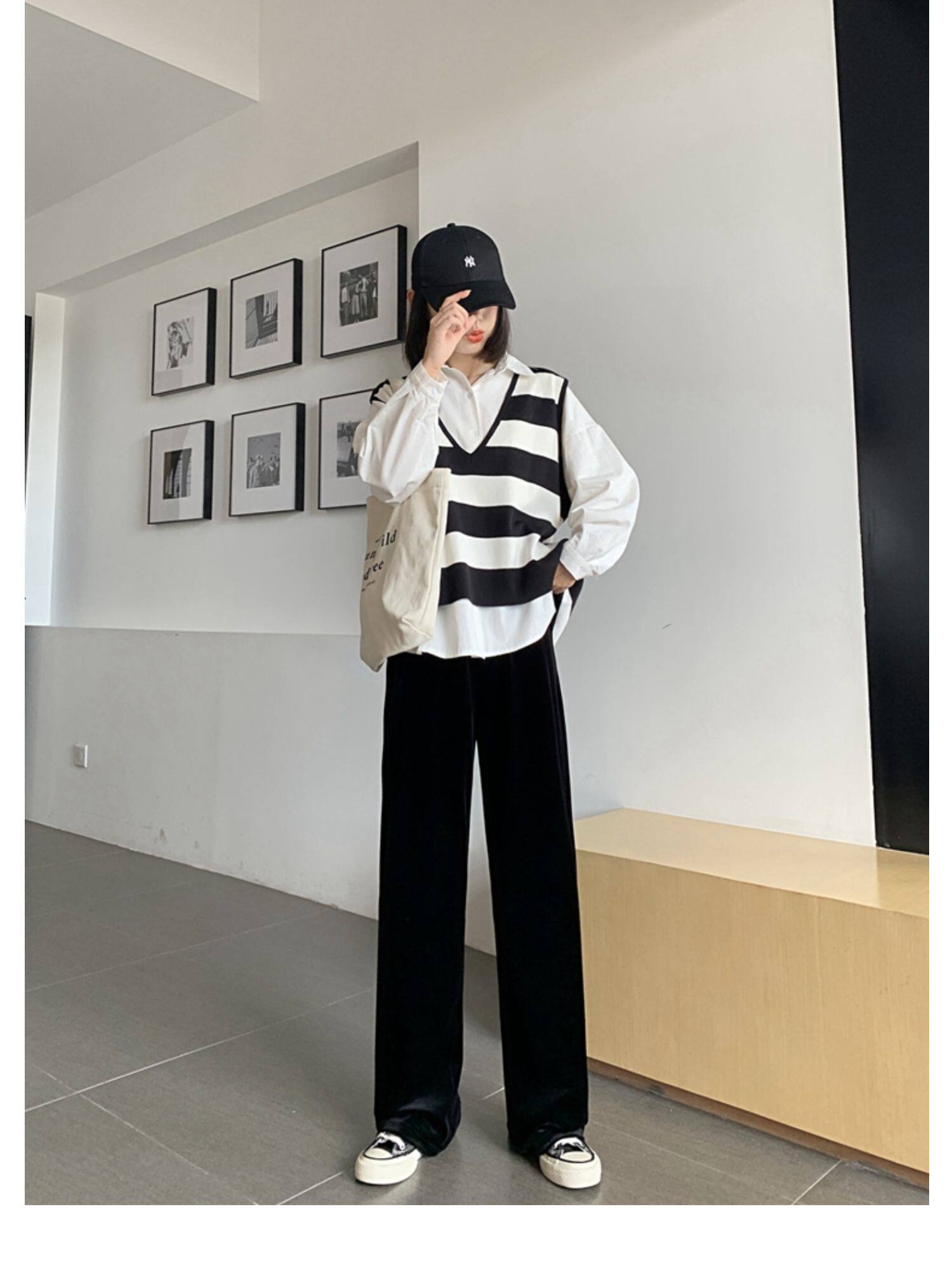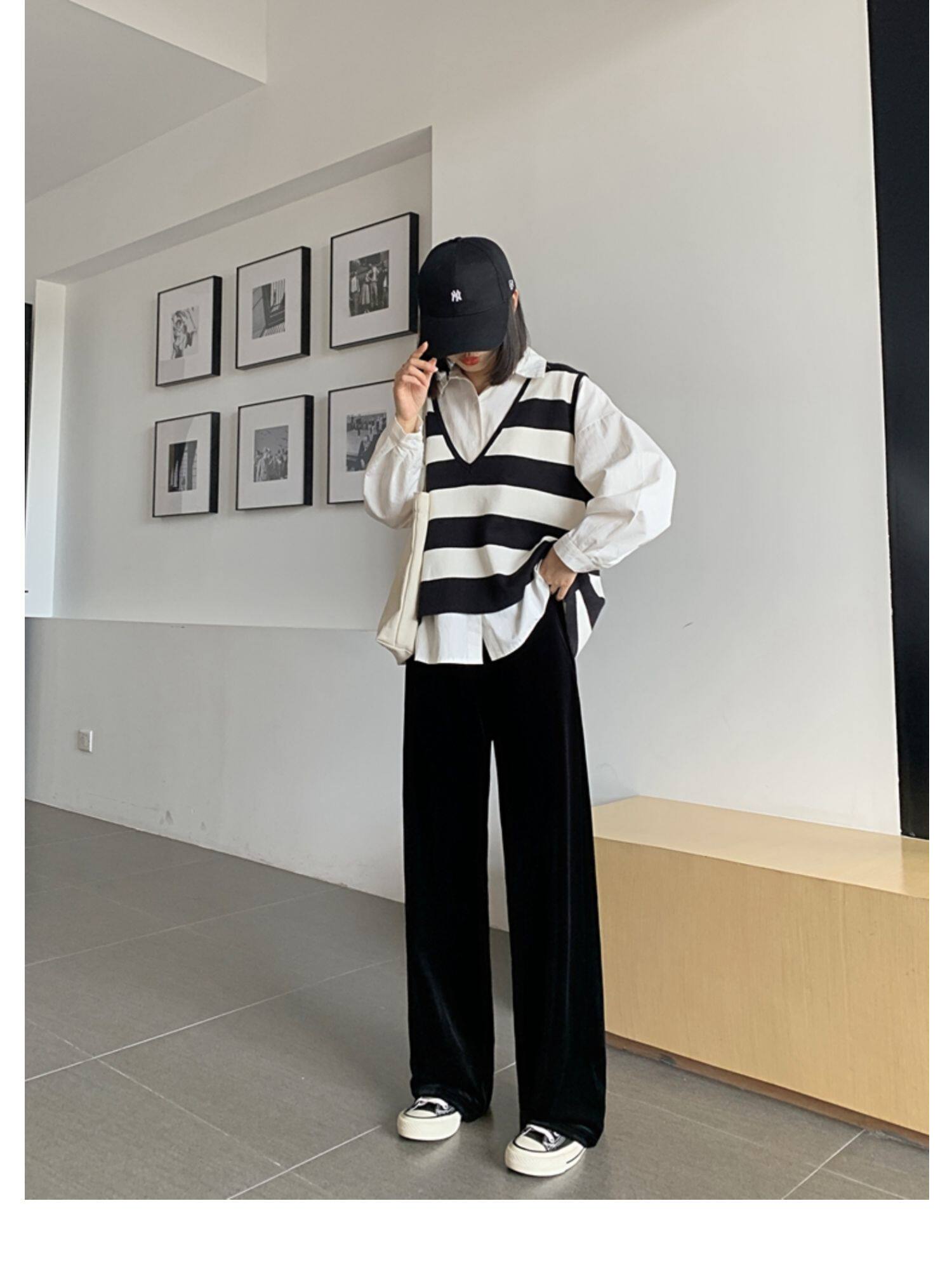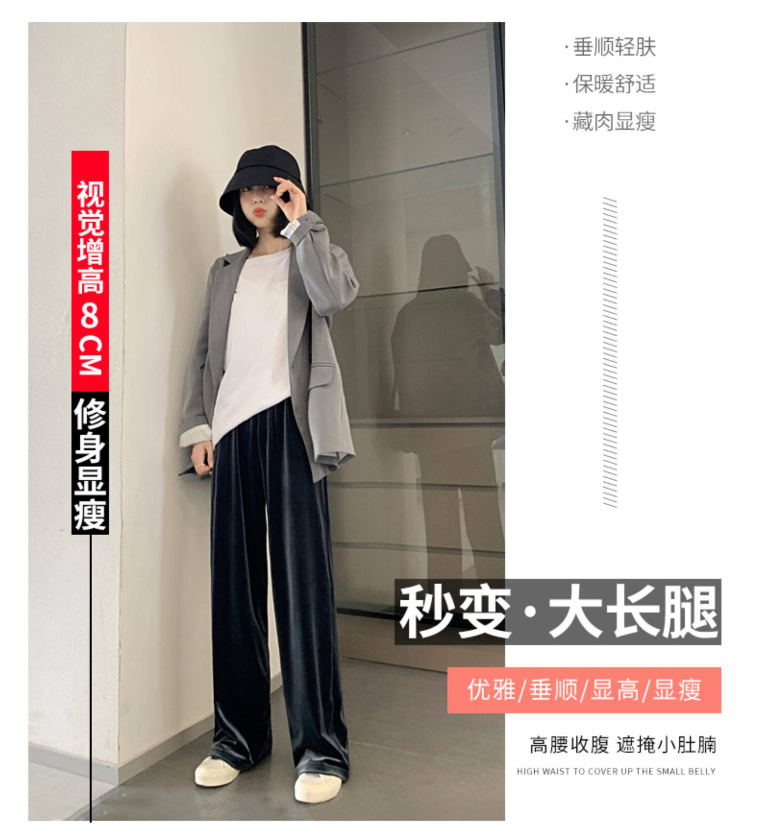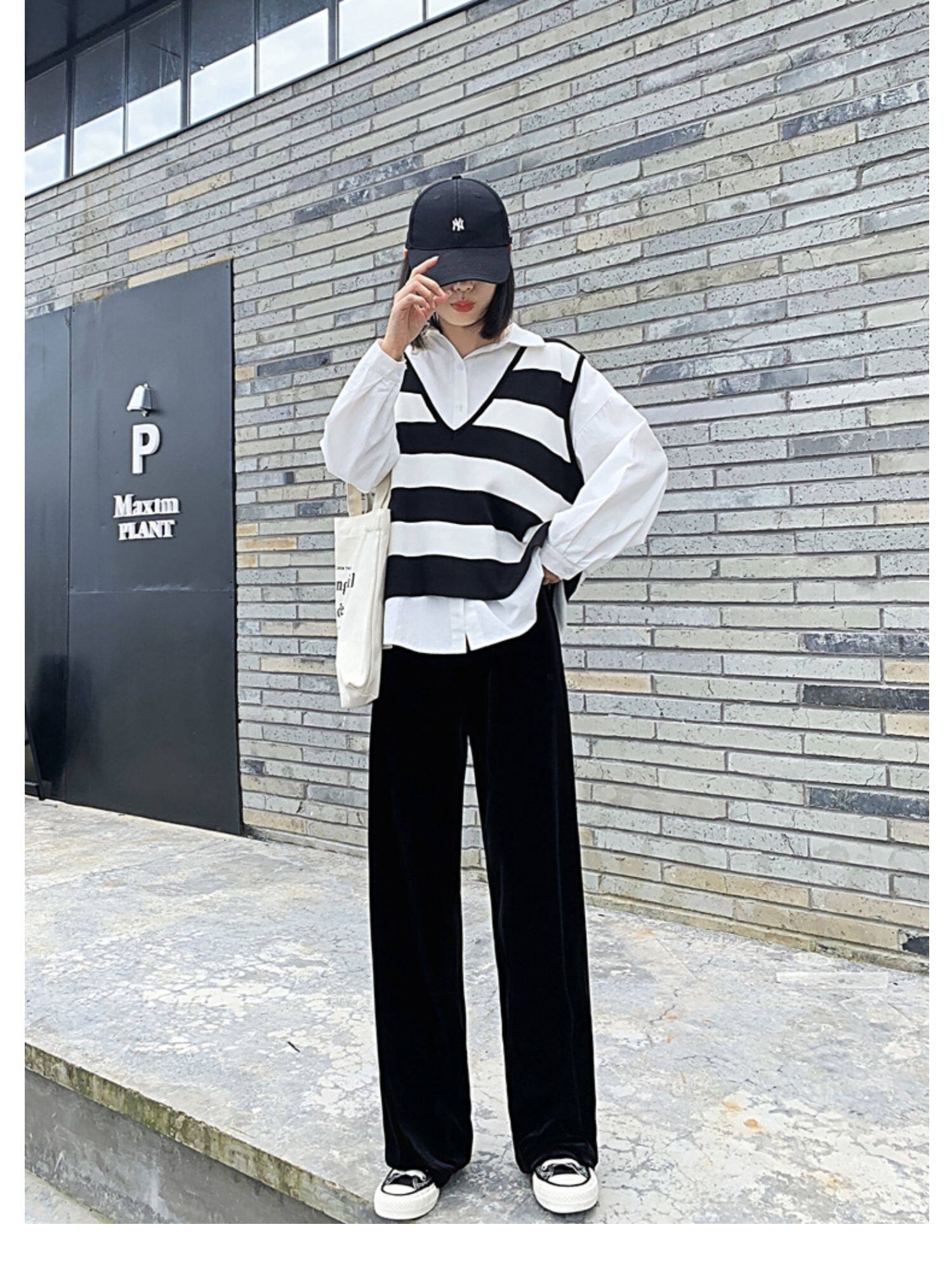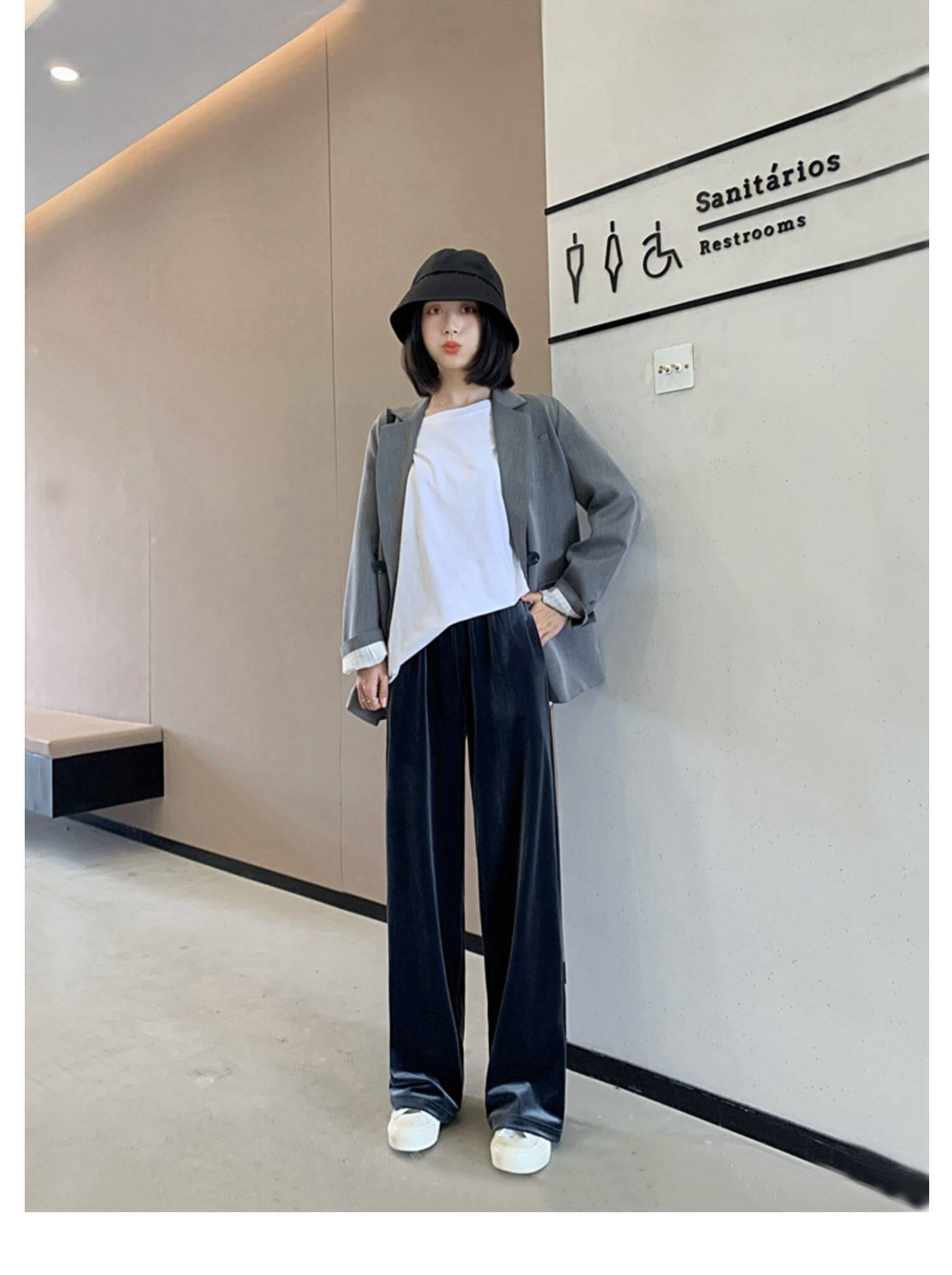 Тонкие бархатные штаны, высокая талия, свободный прямой крой