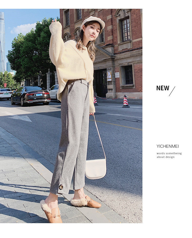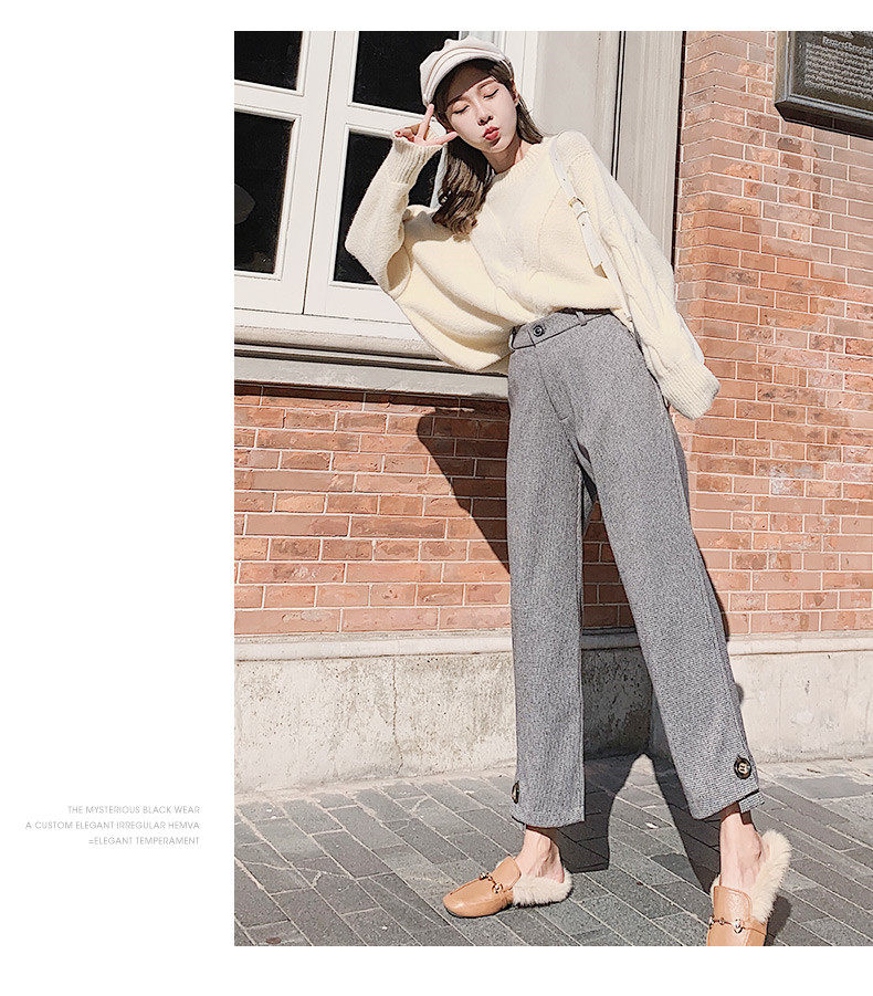 Шерстяные демисезонные флисовые штаны, коллекция 2023, высокая талия, свободный прямой крой