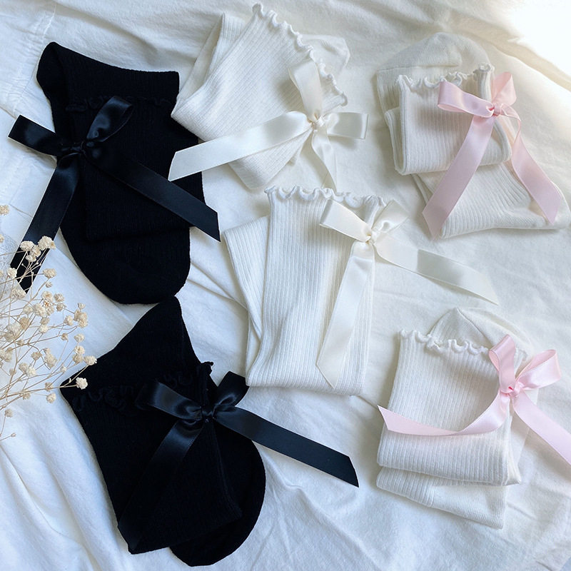 Милые японские хлопковые тонкие носки с бантиком для принцессы, стиль Лолита, средней длины