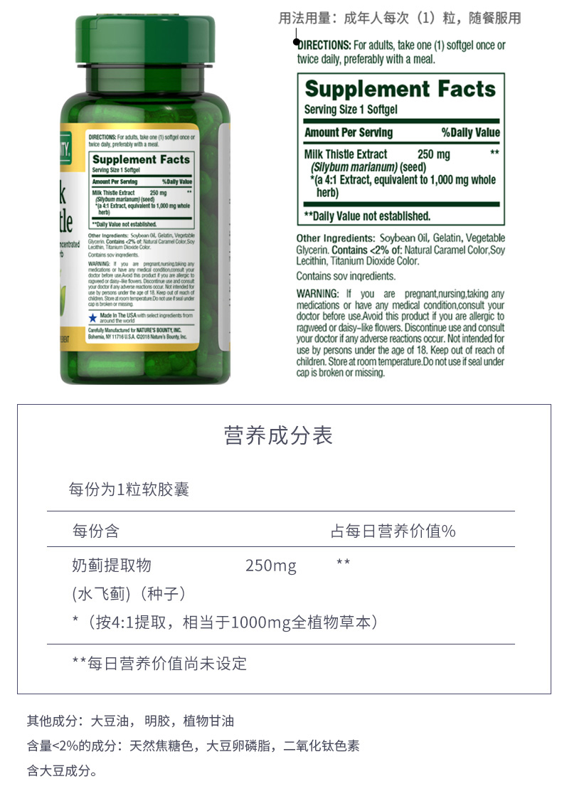 Импортированные природные сокровища Соединенных Штатов, Cao Ben Milk Thiptle Soft Capsules 50 Быстрая скорость интерпретация обнаружения пребывания сверхурочных сверхурочных здоровья.