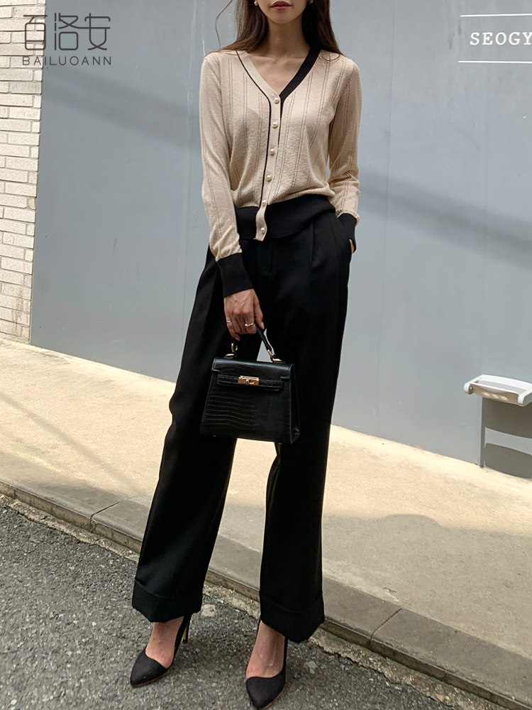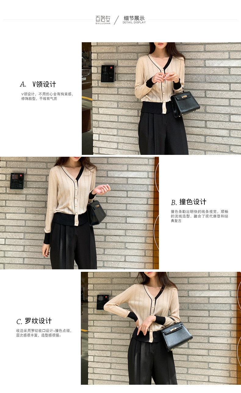 百洛安 Трикотажный осенний кардиган, короткая куртка, V-образный вырез, защита от солнца