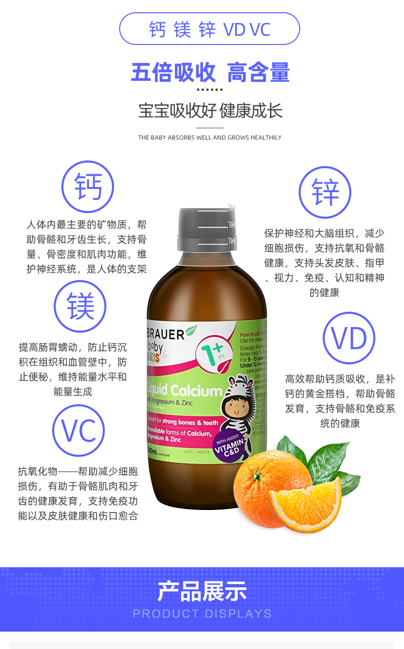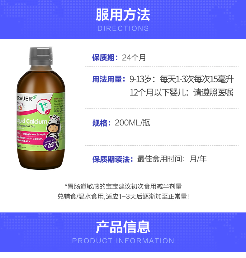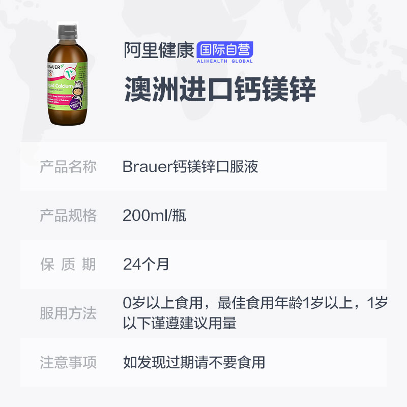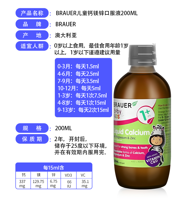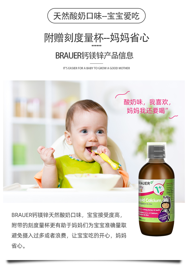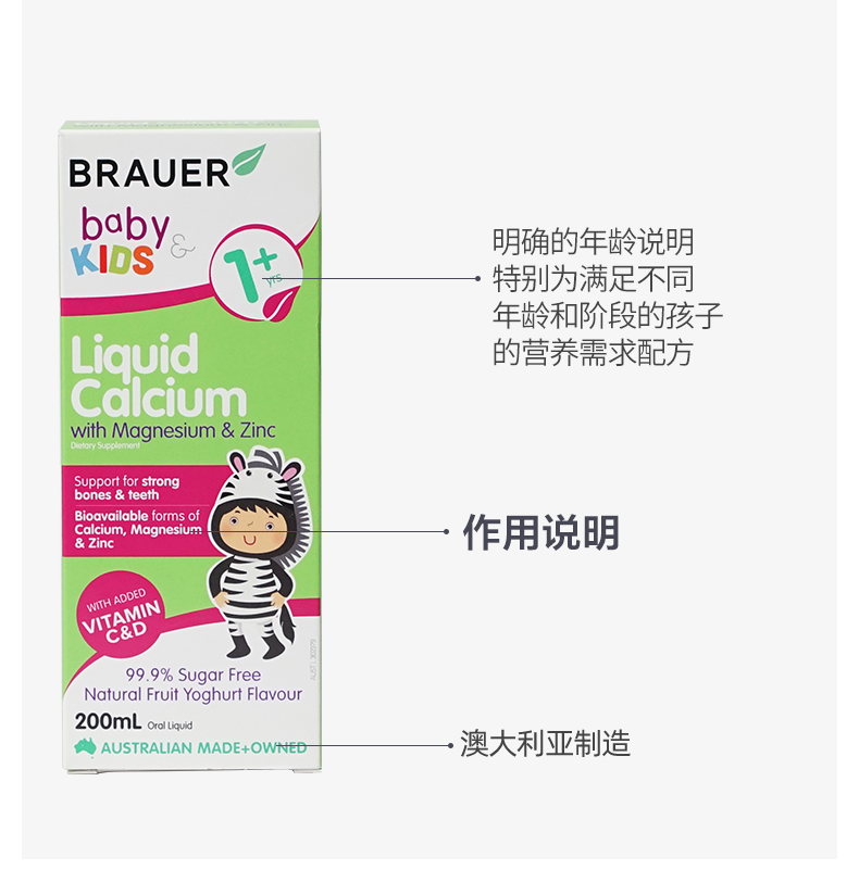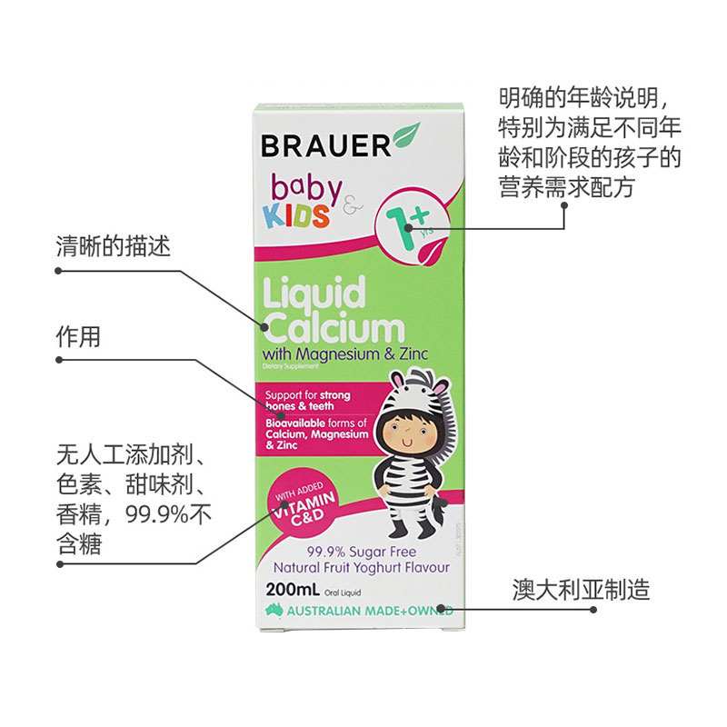 Brauer Австралия импортировал небольшая зеленая бутылка детская кальций, магний, магниевый цинк для пероральной жидко
