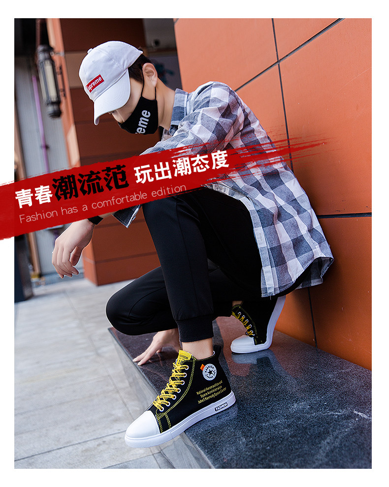 Высокие тканевые трендовые кроссовки, черная обувь, коллекция 2022, осенние, в корейском стиле