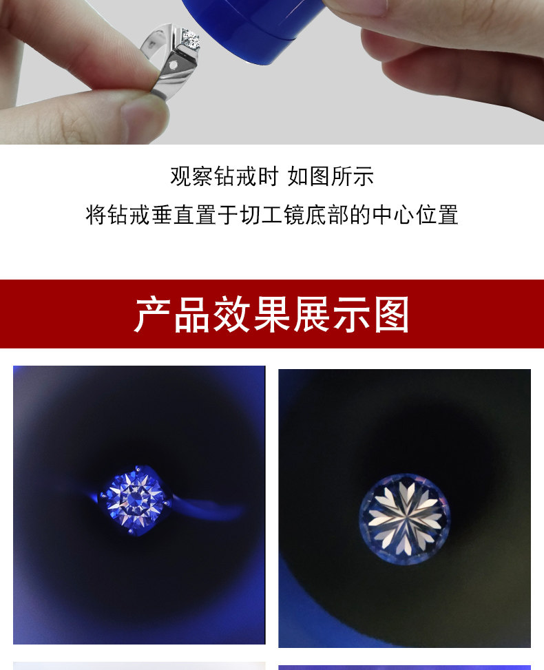 【HD】 восемь сердец и восемь стрелок режущие зеркало ювелирные изделия из бриллиантовых идентификационных инструментов Увеличение алмазного кольца с бриллиантовым кольцом