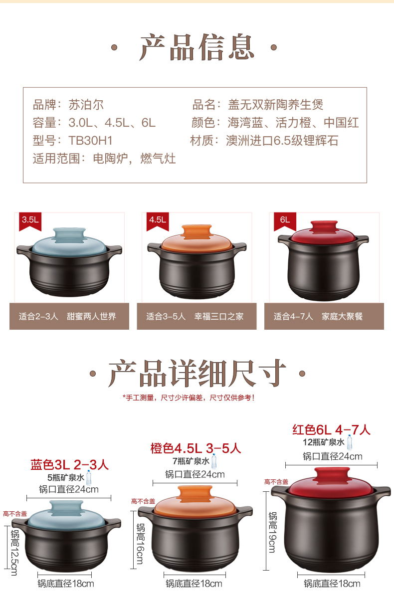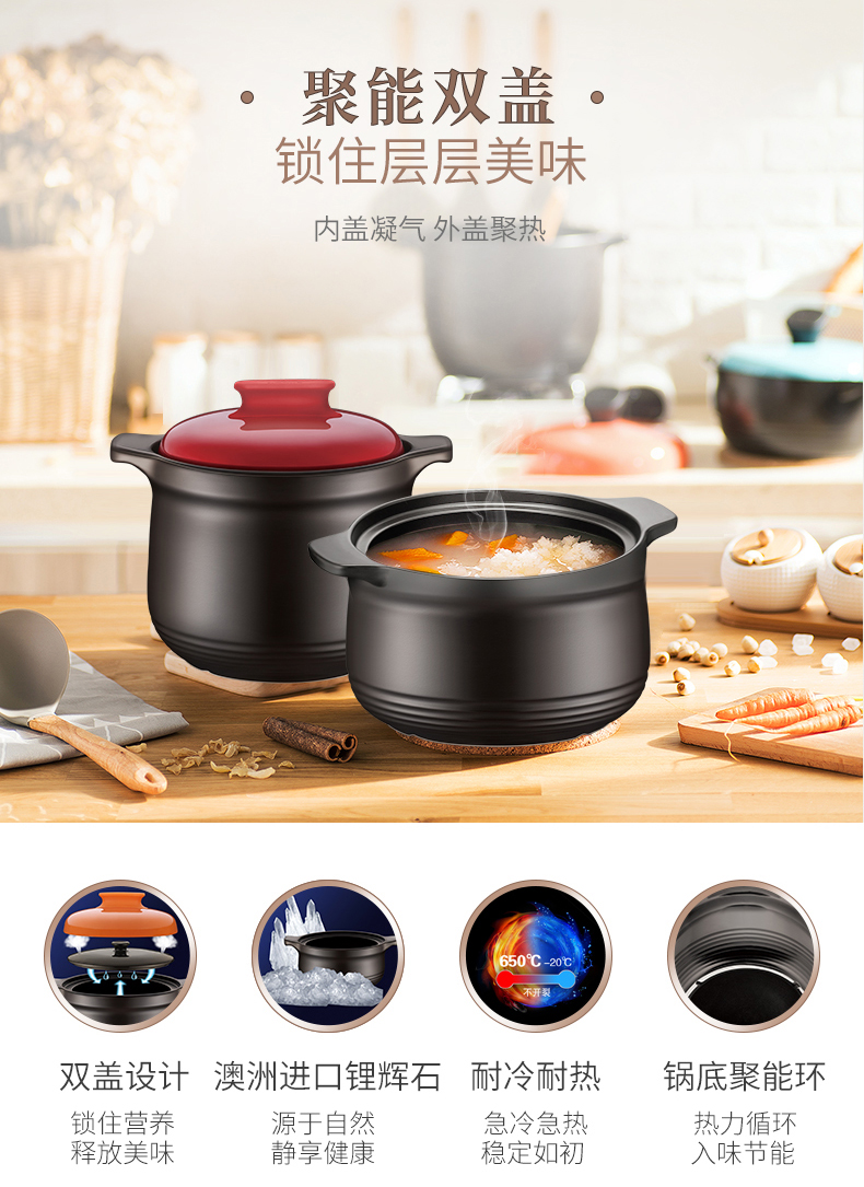Supor Corterole Плита растрака. Домохозяйственная газовая газ Специальный суп -горшок с двойной крышкой с двойной температурой керамическая плита множество возможностей