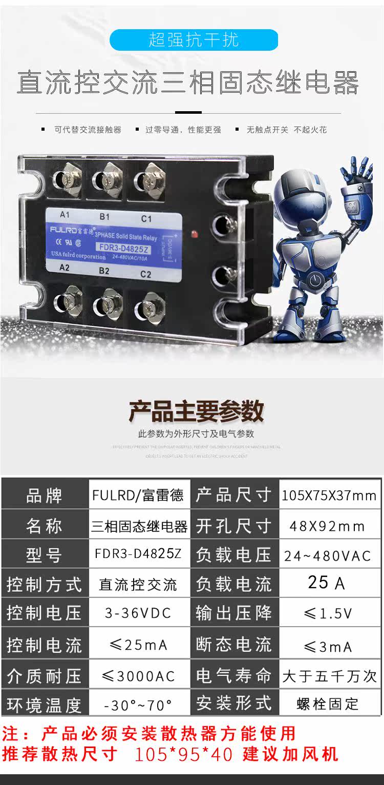 SSR-3 032 3825Z Трехфазное твердотельное реле 25A FDR3-D4825Z FREDER 2 года