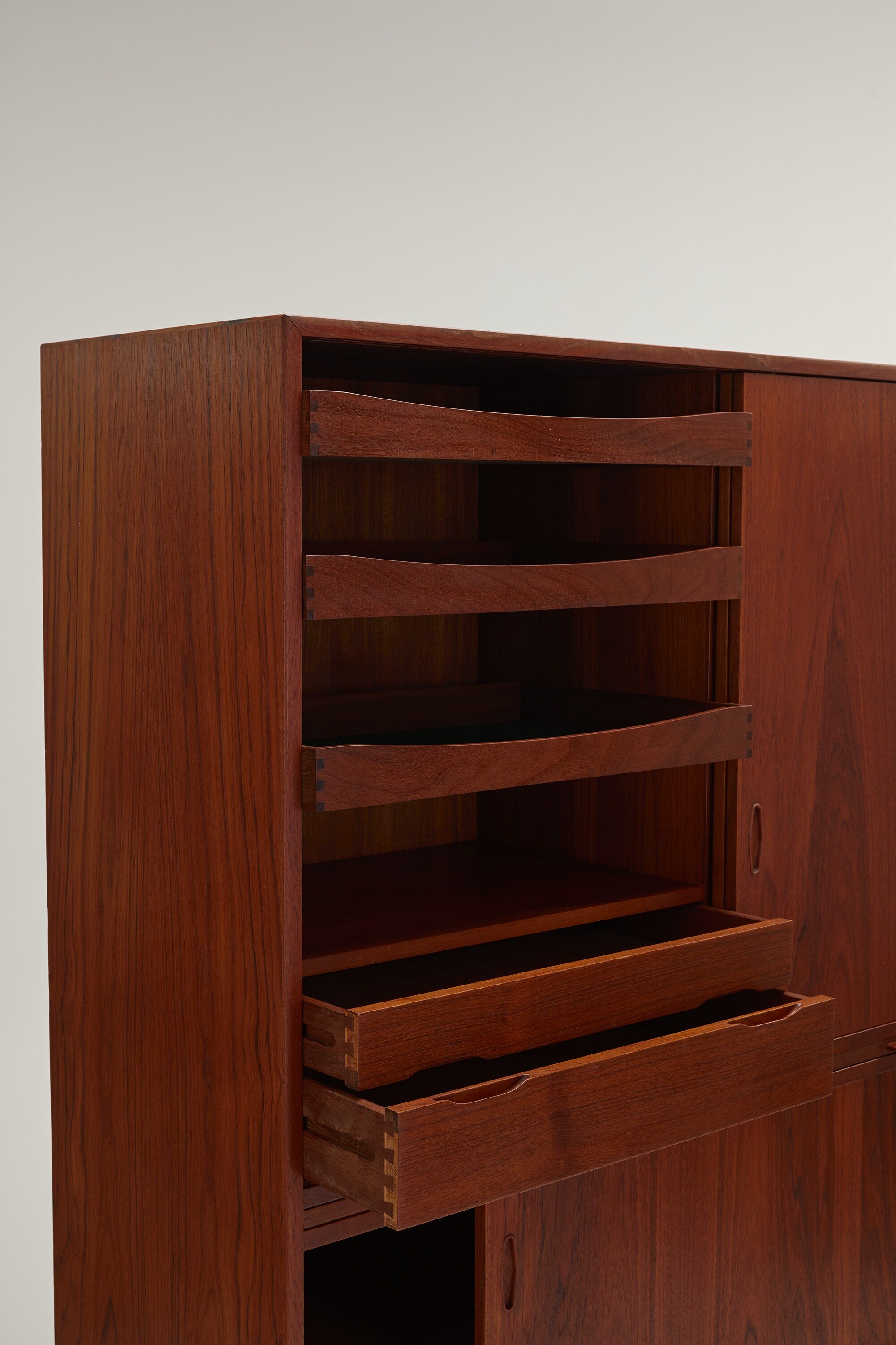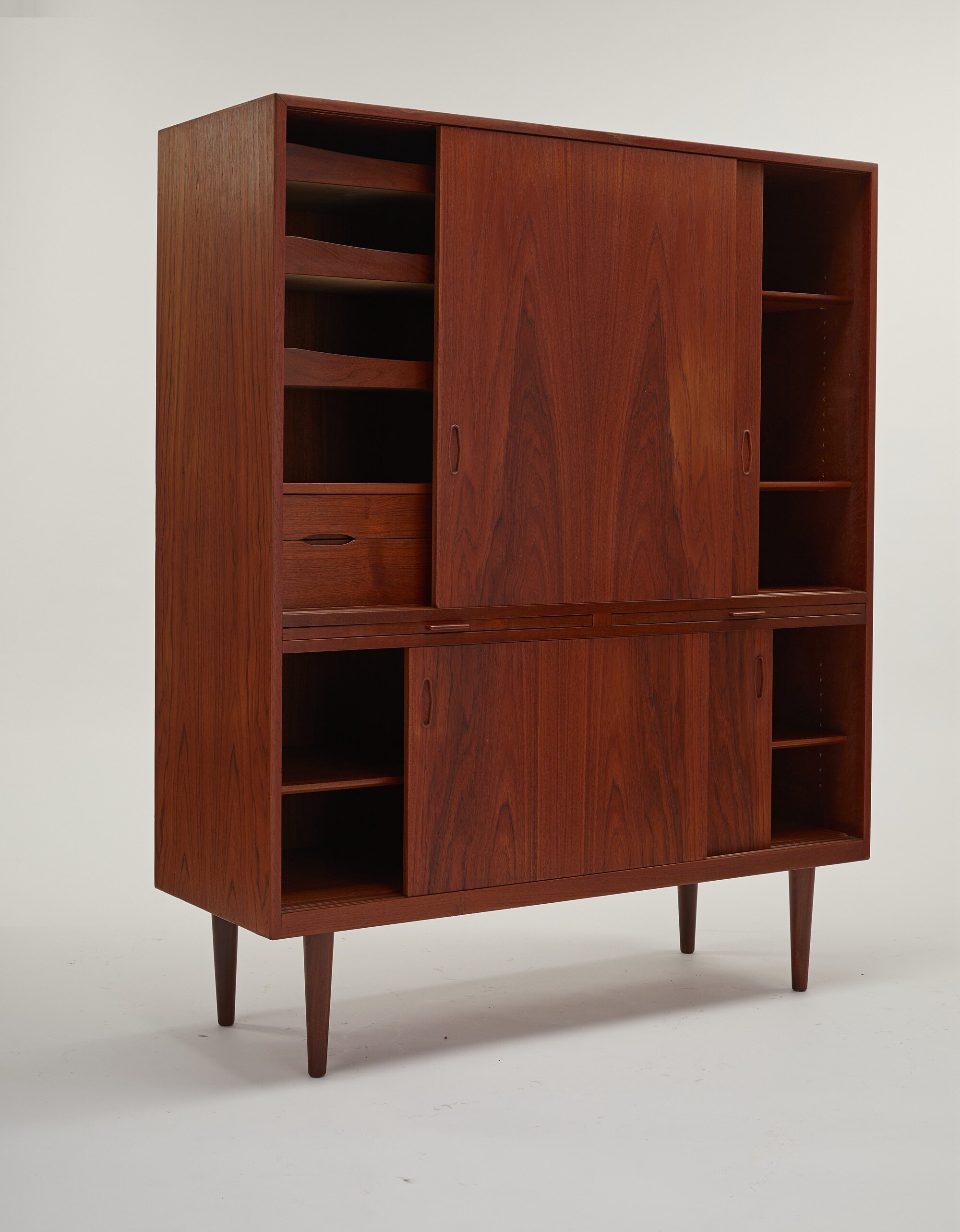 [Личные вещи владельца] Винтажный выдвижной тиковый шкаф 1950 года для столовой.