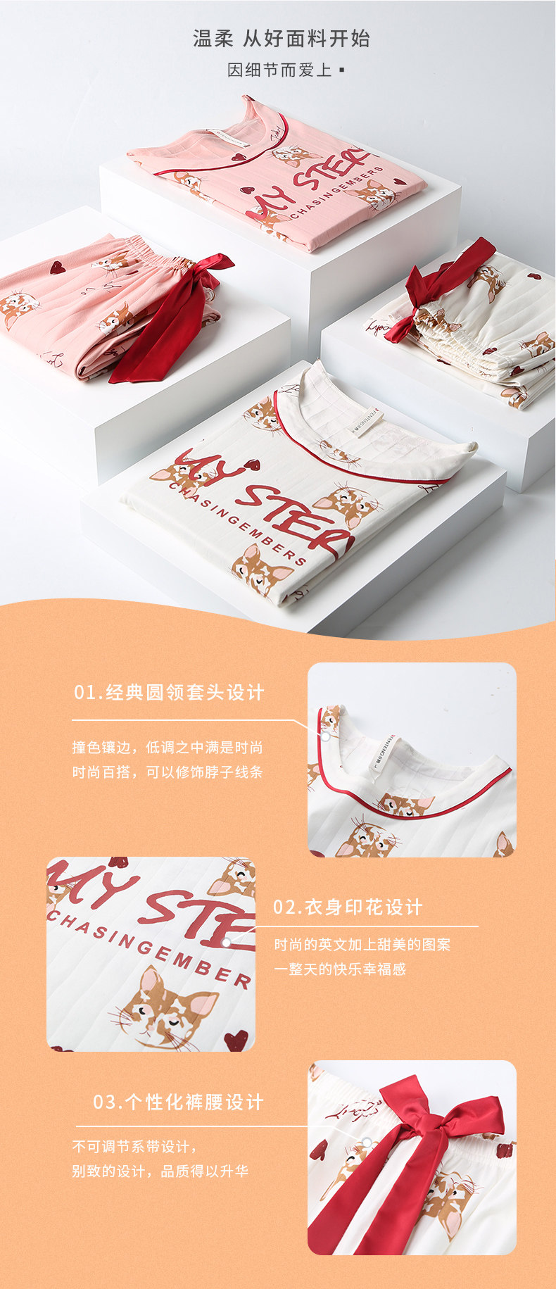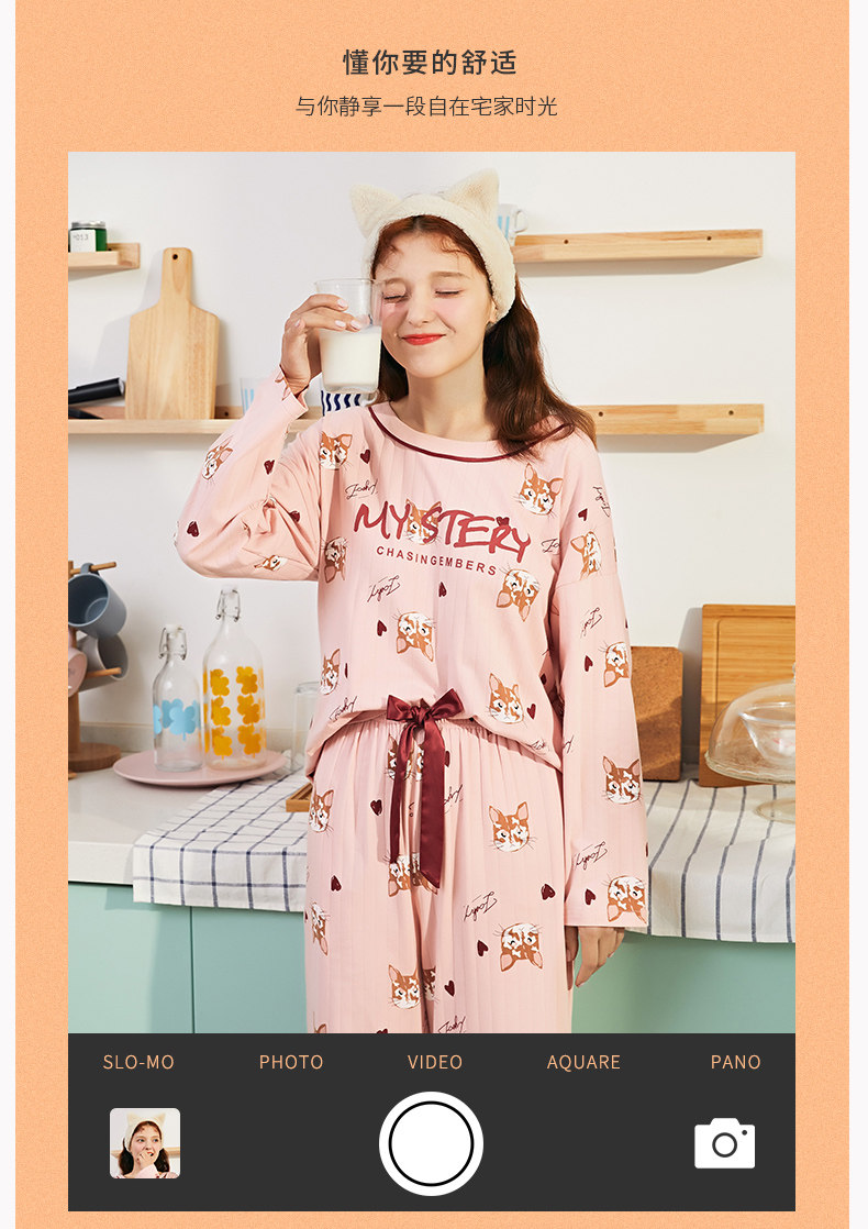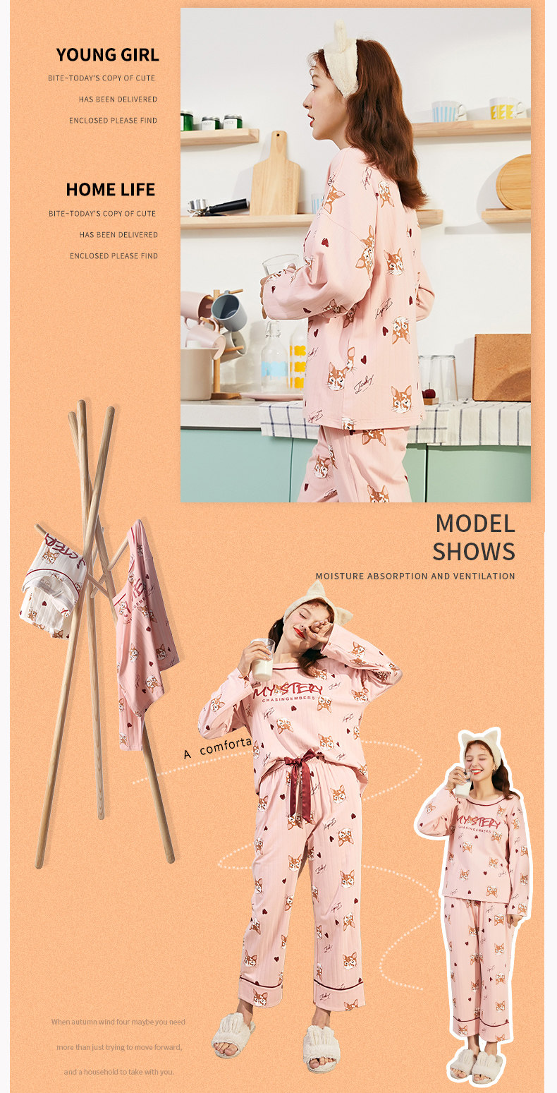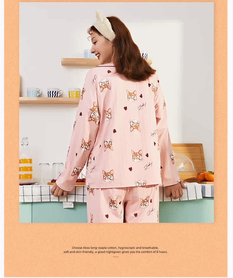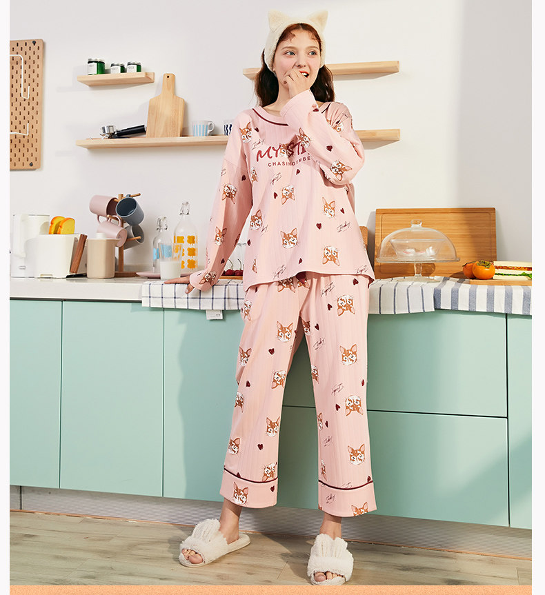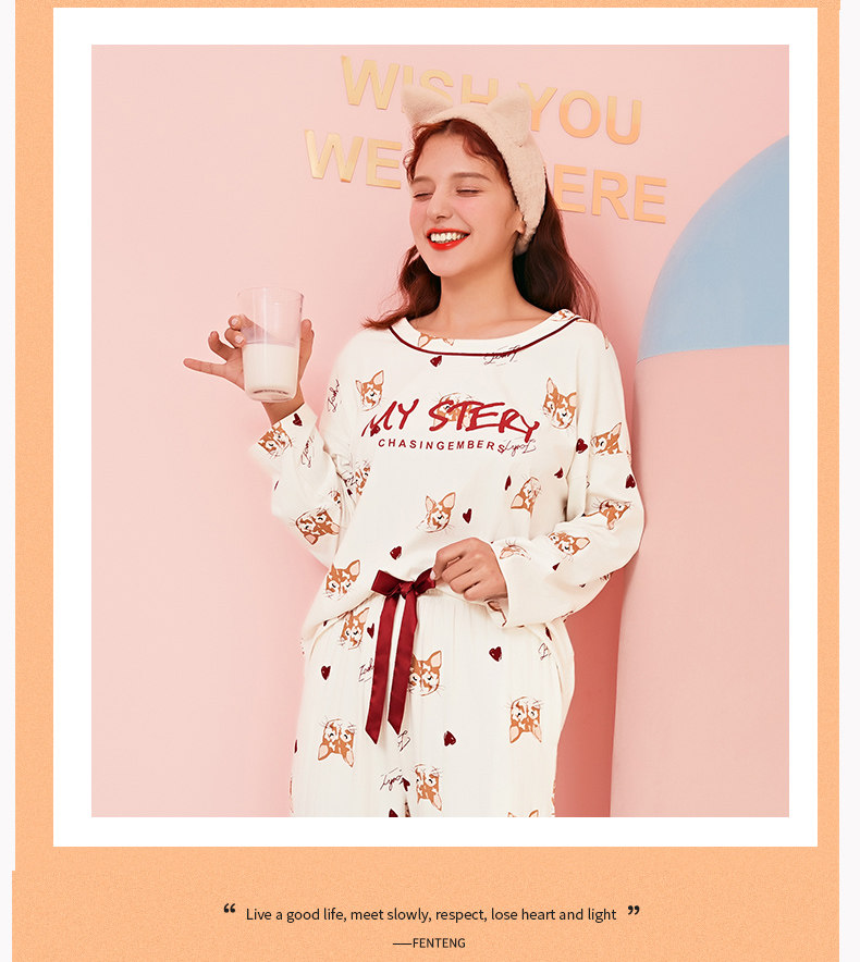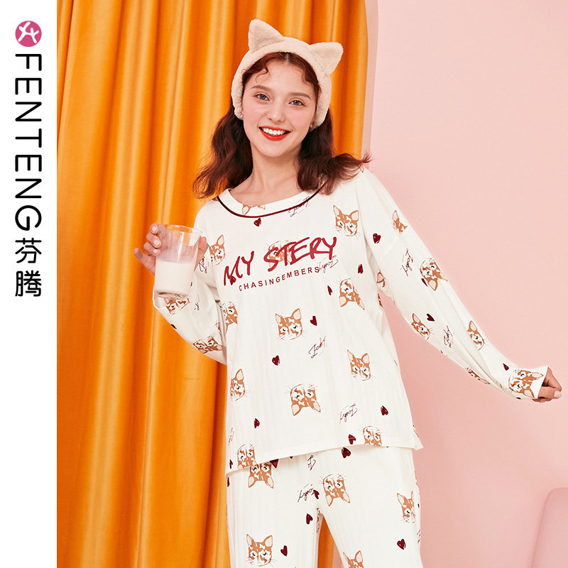 芬腾 Пижама, хлопковый лонгслив, мультяшные зимние штаны, тонкий комплект