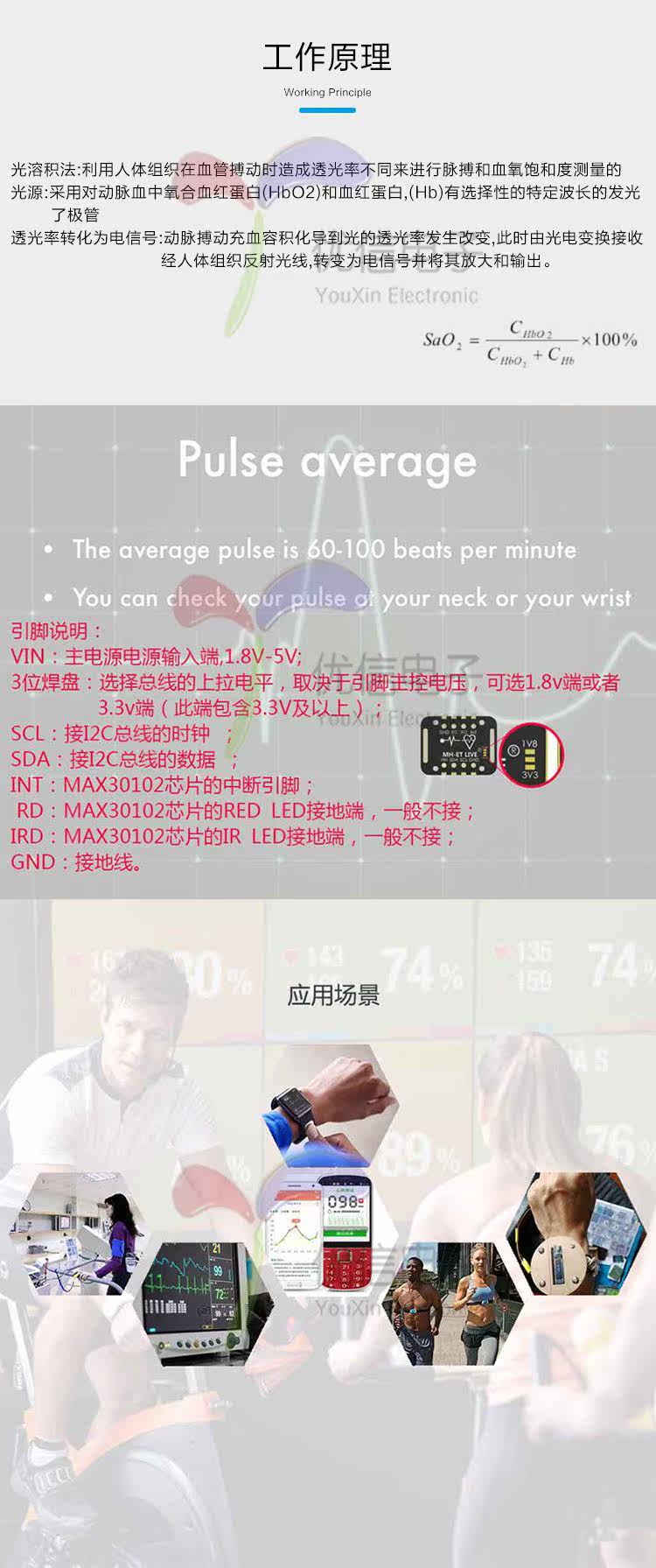 [Youxin Electronics] MAX30102 Кровяная концентрация кислорода концентрация сердечных сокращений в крови модуль пульса.
