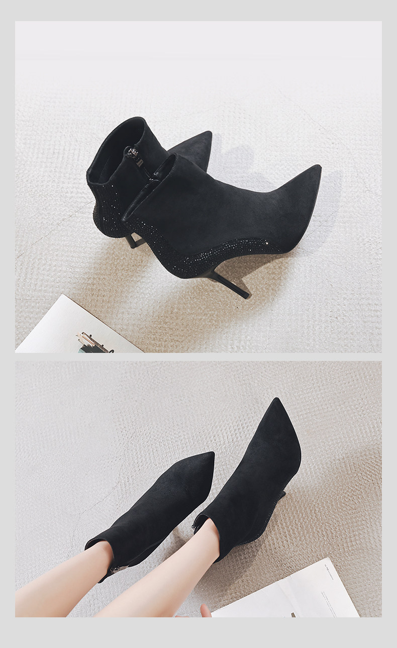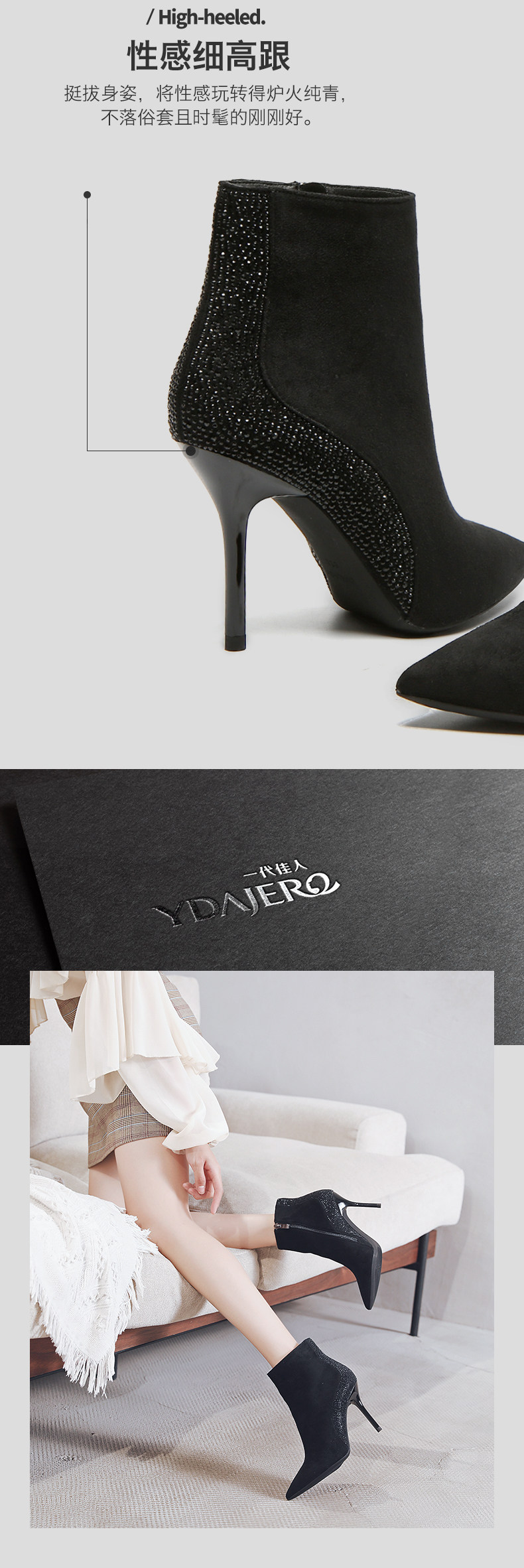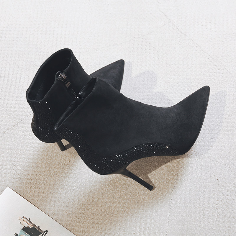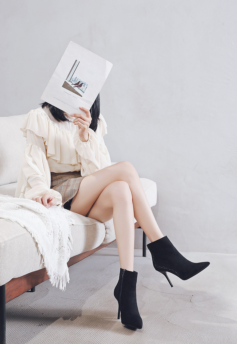 一代佳人 Демисезонные короткие сапоги с заостренным носом, замшевая высокая цепочка с молнией, 2020