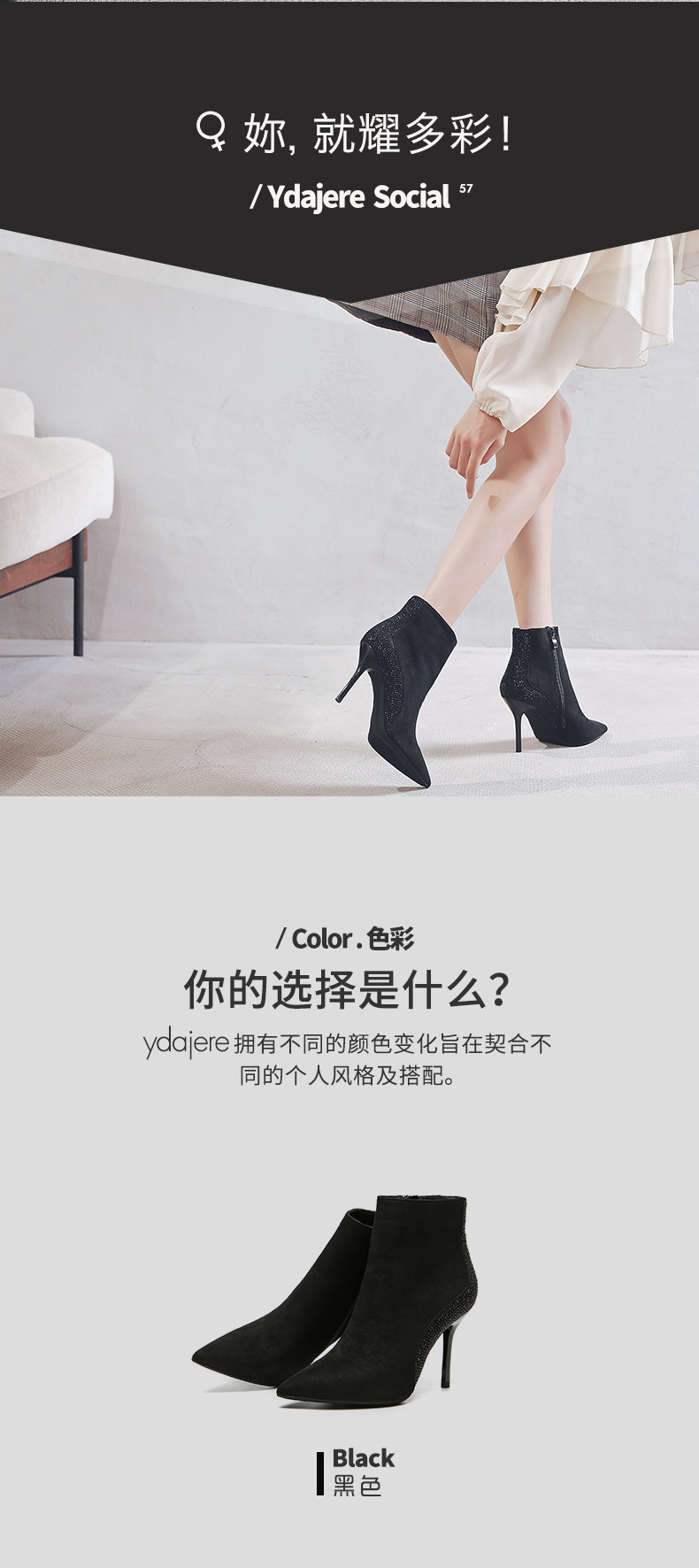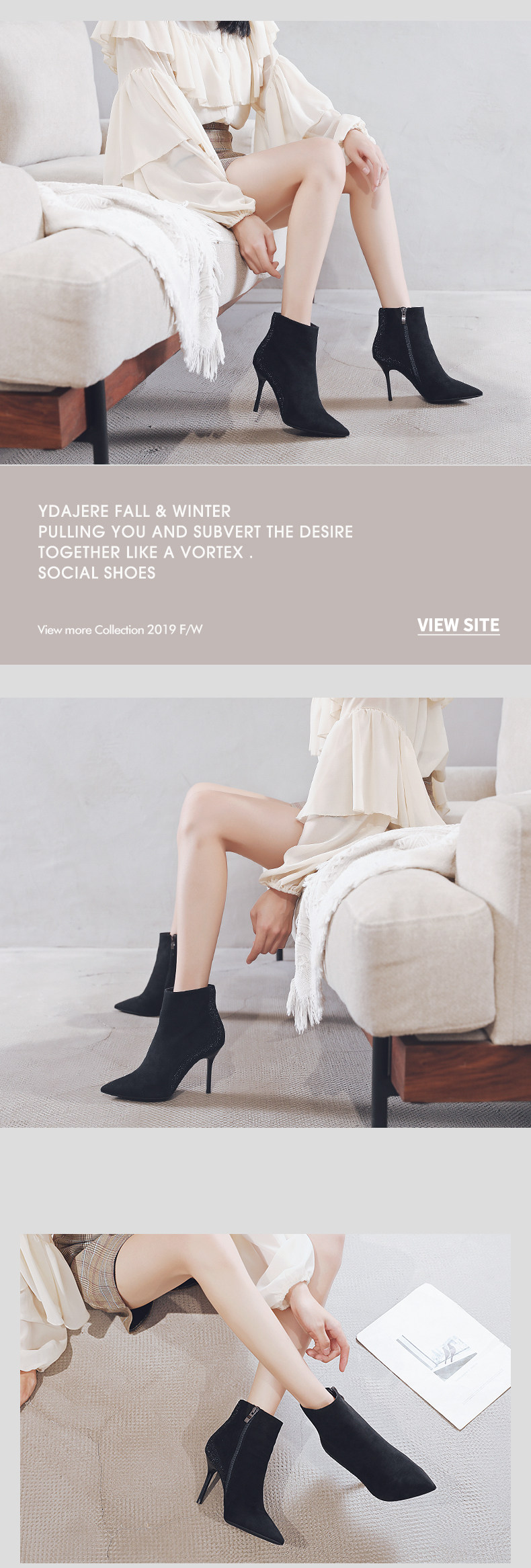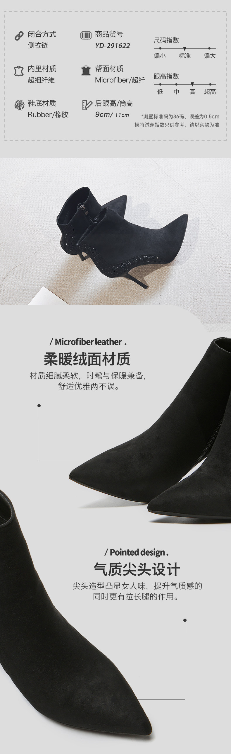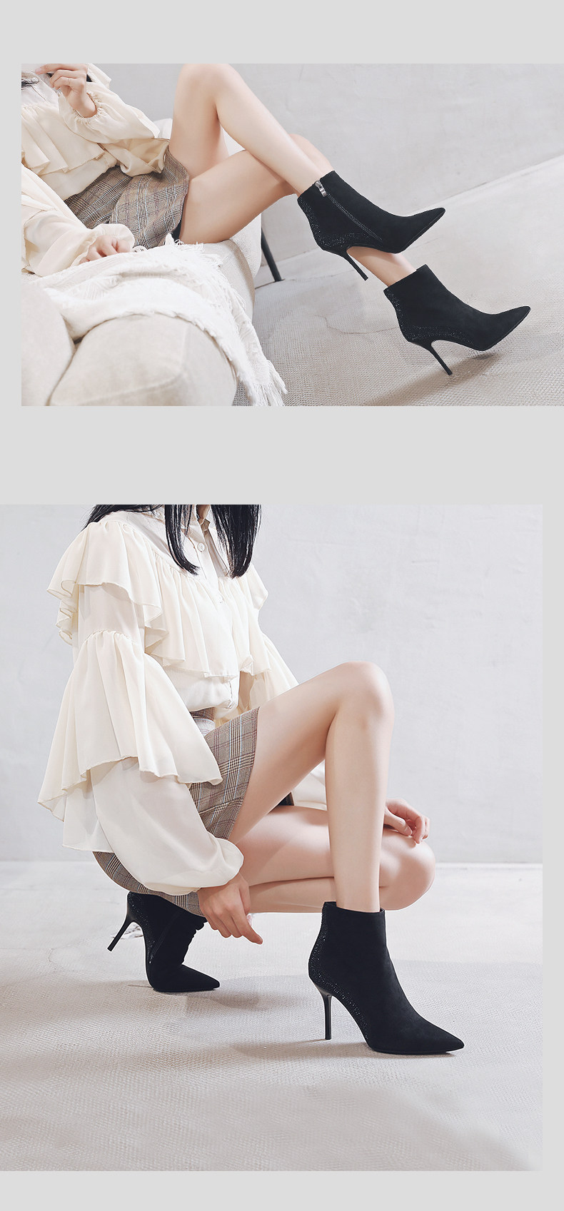一代佳人 Демисезонные короткие сапоги с заостренным носом, замшевая высокая цепочка с молнией, 2020