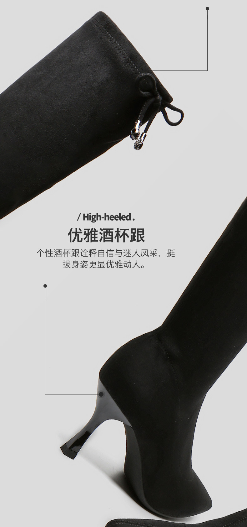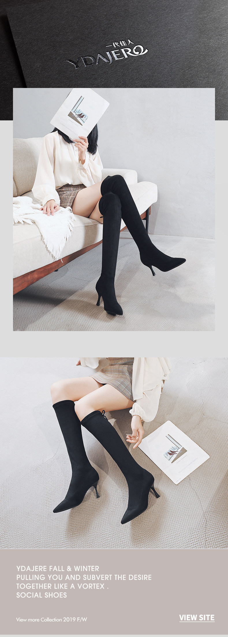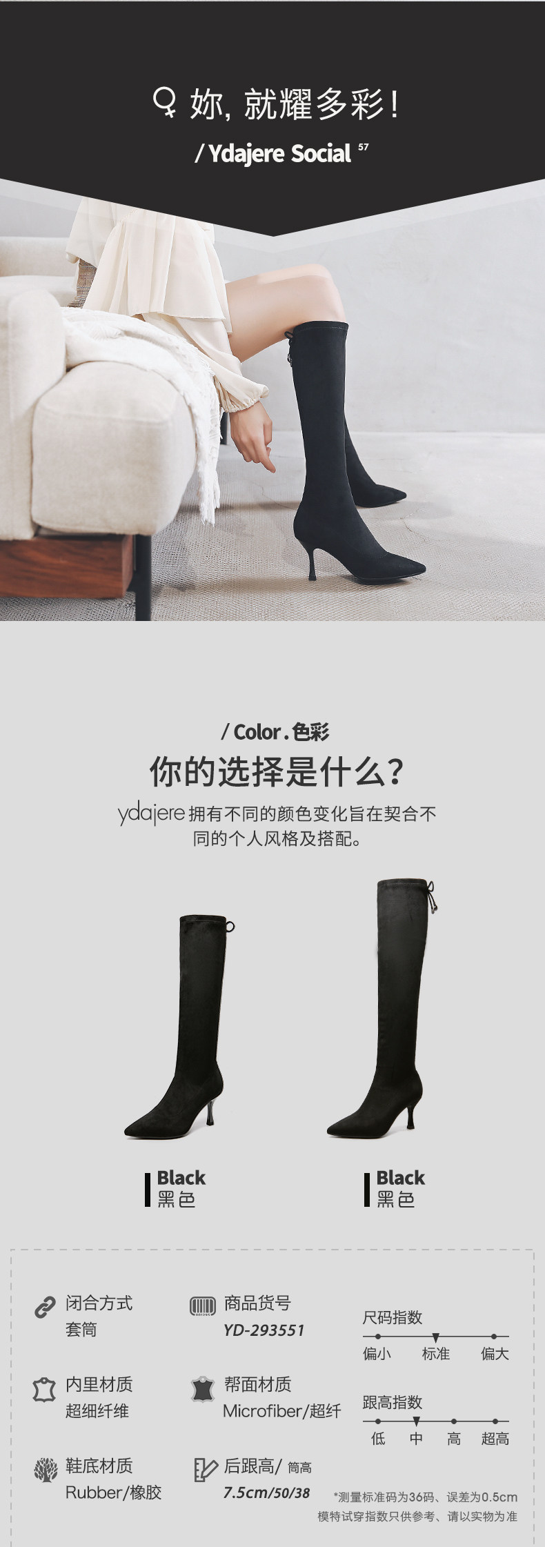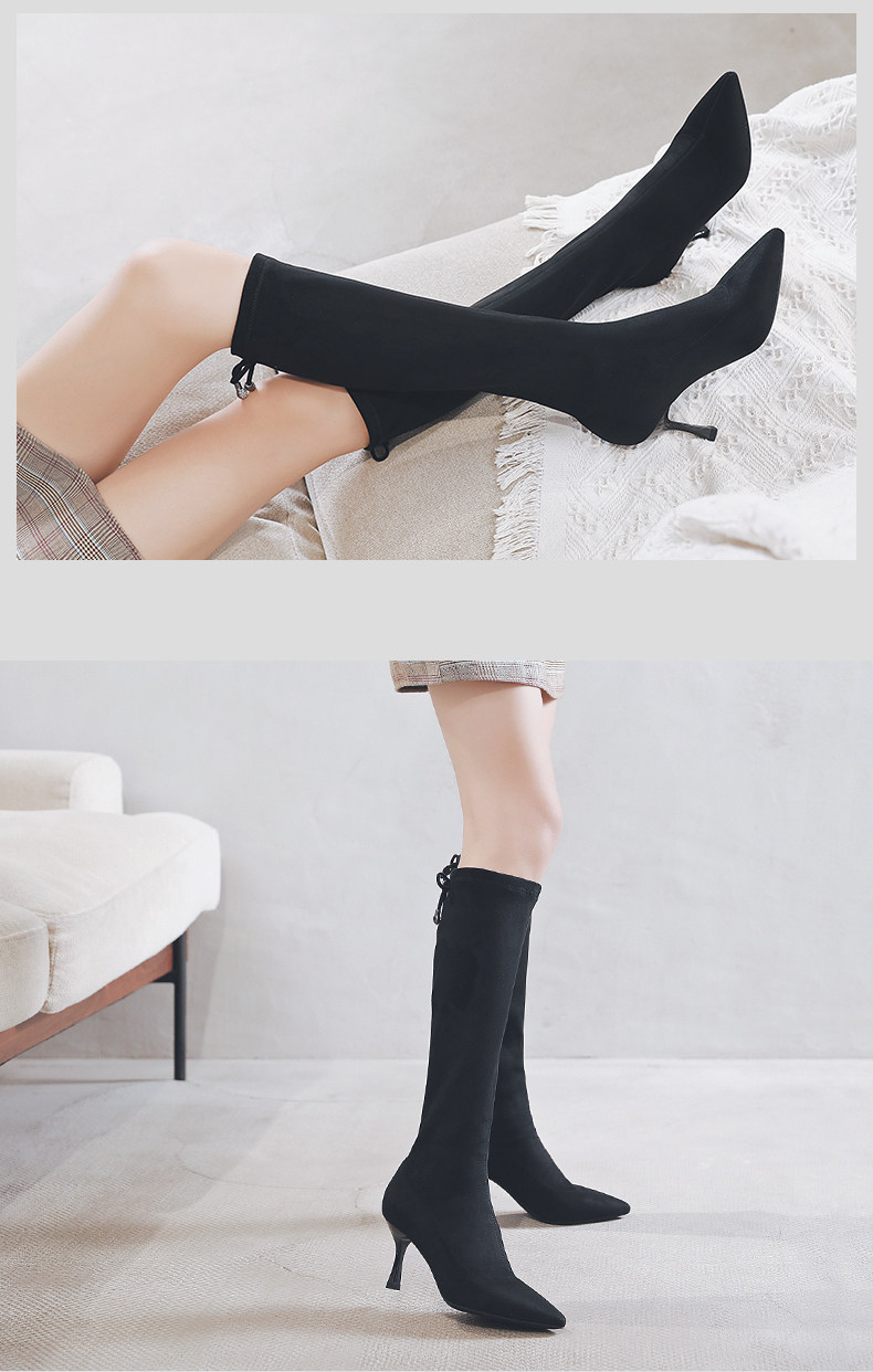一代佳人 Демисезонные черные высокие сапоги, 2020, средней длины