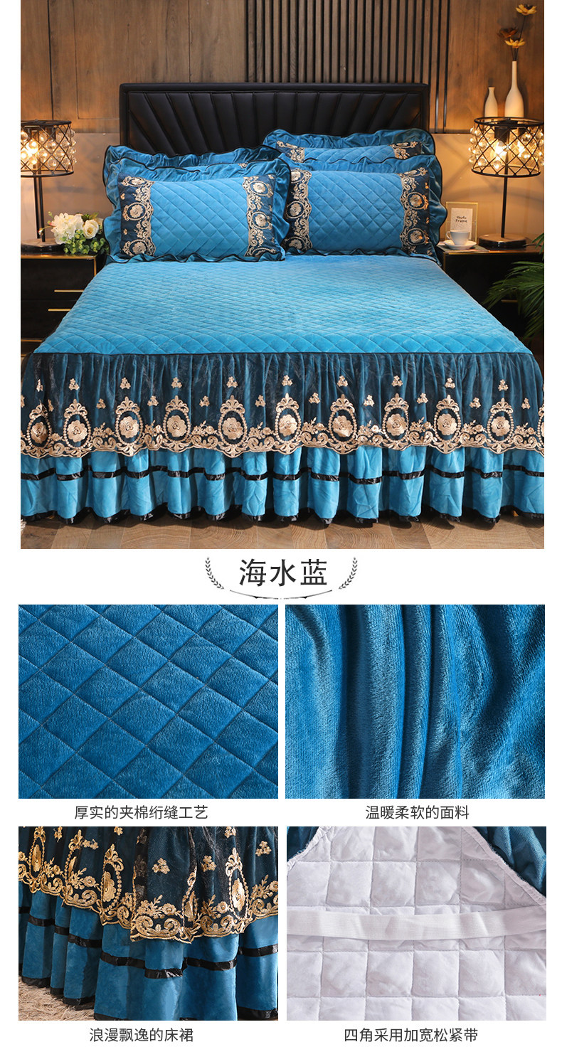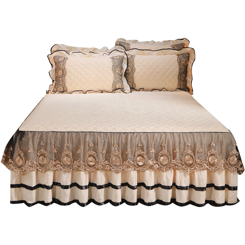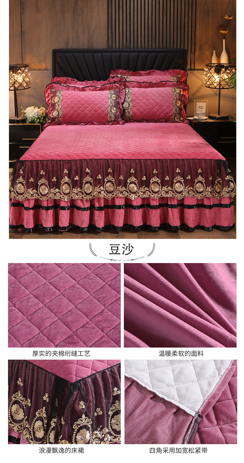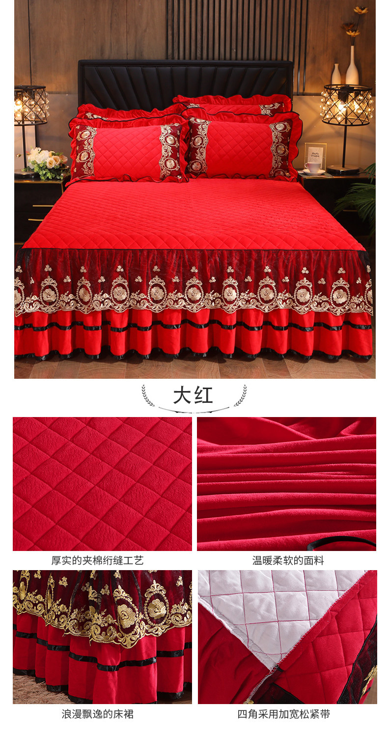 Бархатная коралловая кружевная стеганая юбка, удерживающее тепло покрывало, простыня, европейский стиль, увеличенная толщина, 1.8м
