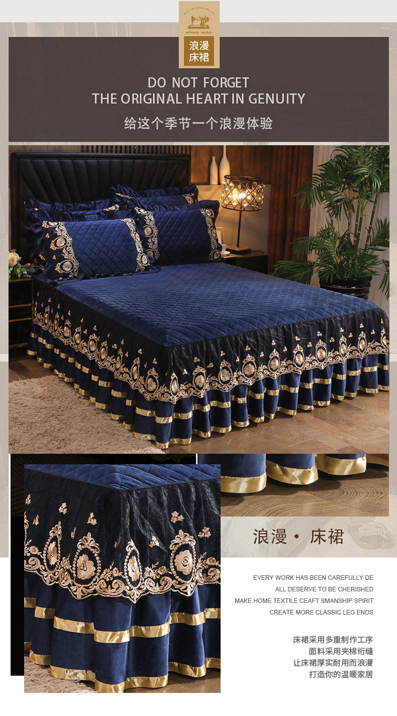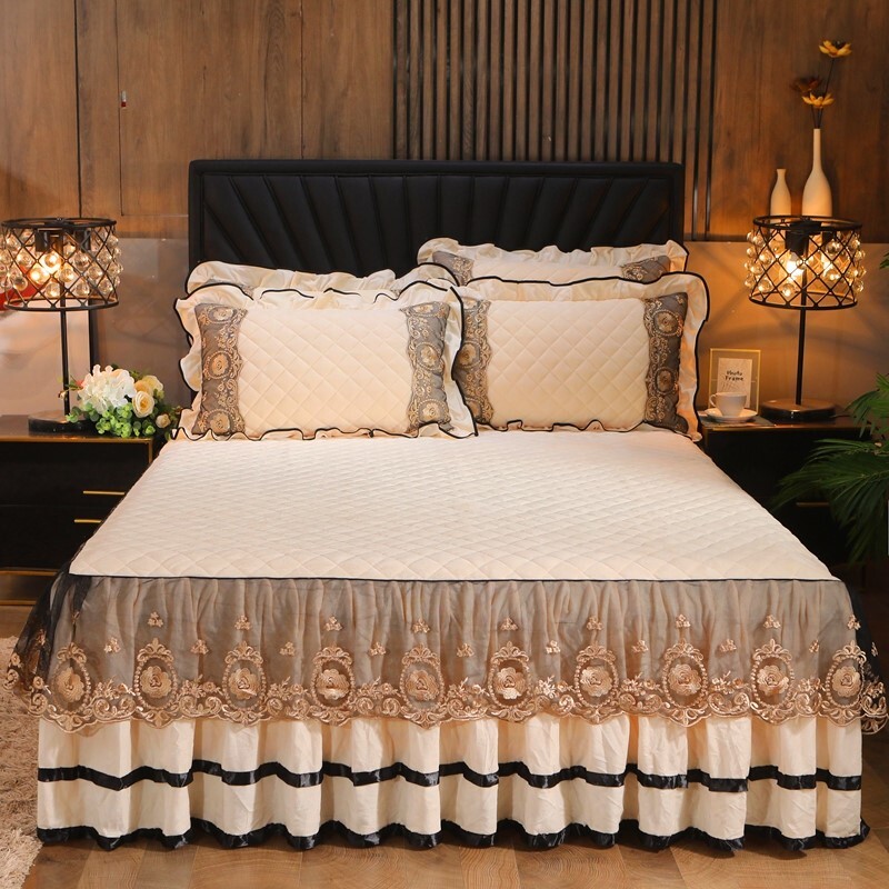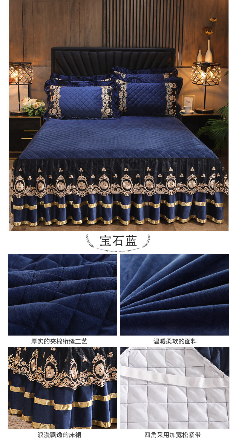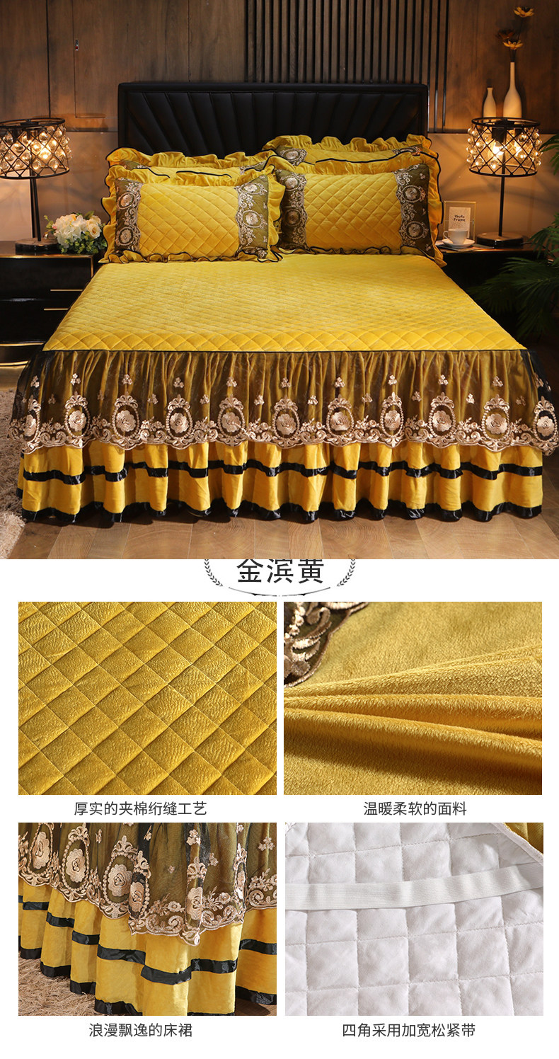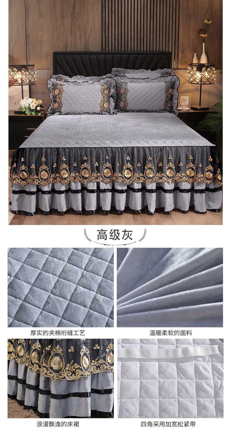 Бархатная коралловая кружевная стеганая юбка, удерживающее тепло покрывало, простыня, европейский стиль, увеличенная толщина, 1.8м
