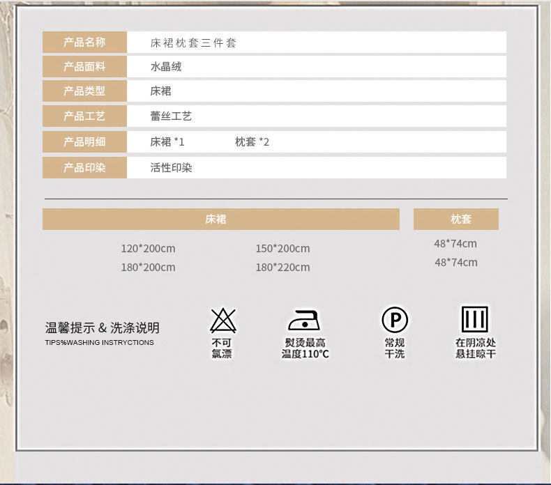 | Размеры простыней/кроватей: | 150*200 см (юбка односпальной кровати), 180*200 см (юбка односпальной кровати), 180*220 см (юбка односпальной кровати), 200*220 см (юбка односпальной кровати), 150*200 см (юбка для односпальной кровати)+одна пара корпуса наволочки = три -набор, 180*200 см (юбка для односпальной кровати)+одна пара корпуса наволочки = три -набор, 180*220 см (юбка для односпальной кровати)+одна пара корпуса наволочки = три -набор, 200*220 см (юбка для односпальной кровати)+одна пара корпуса наволочки = три -набор. |