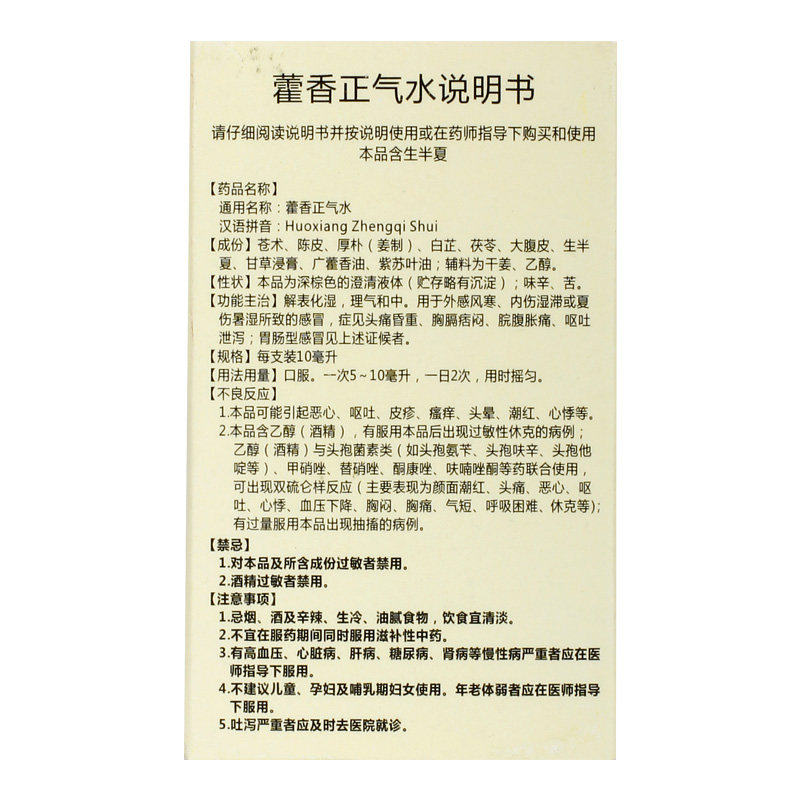 府庆 Huoxiangzhengqi Water 10 мл*10 опоры/расщепление ящиков плохая тошнота, рвота желудочно -кишечная холодная боль, головная боль, вздутие живота