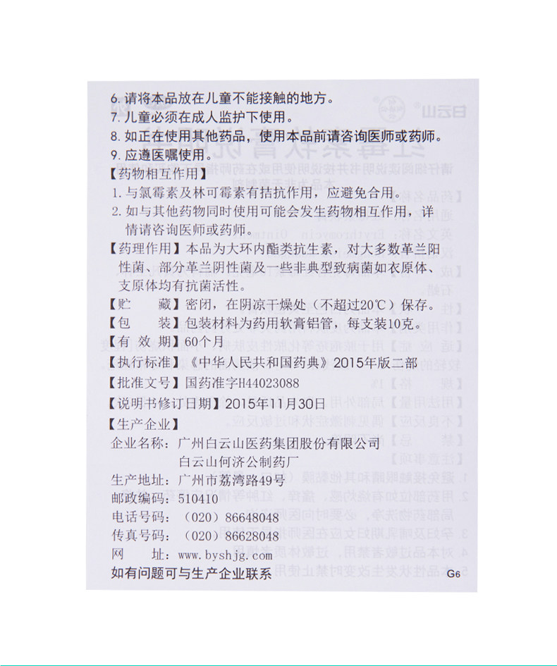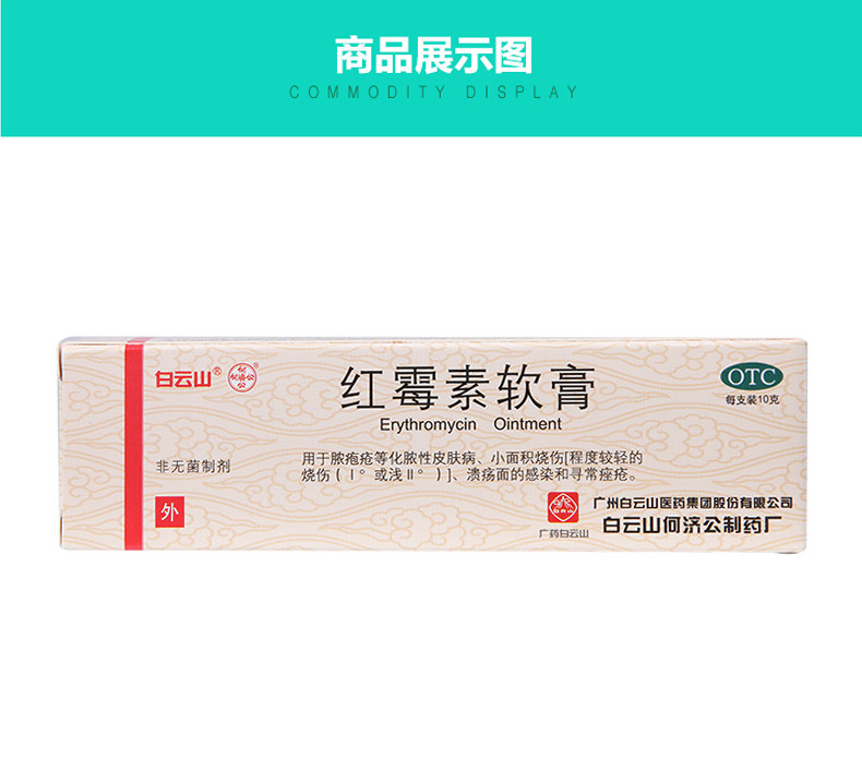白云山 Эритромицин мази 1%*10 г антибиотиковой кожи абсцесс Скабий PUS PUS PUS Пилоридные кожи
