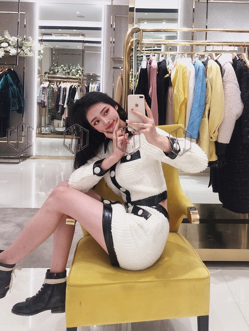 SleepOverSleep Xige Подобные 20 осенне-зимних плюшевых курток с кожаной отделкой и блестками, костюм-юбка Мулан