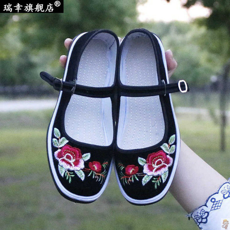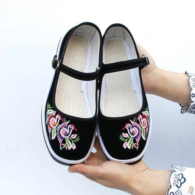 СущностьЖенская ткань ручной работы тысячи -слоя ткани тканевая туфли мама обувь средняя и пожилая повседневная обувь вышитая туфли