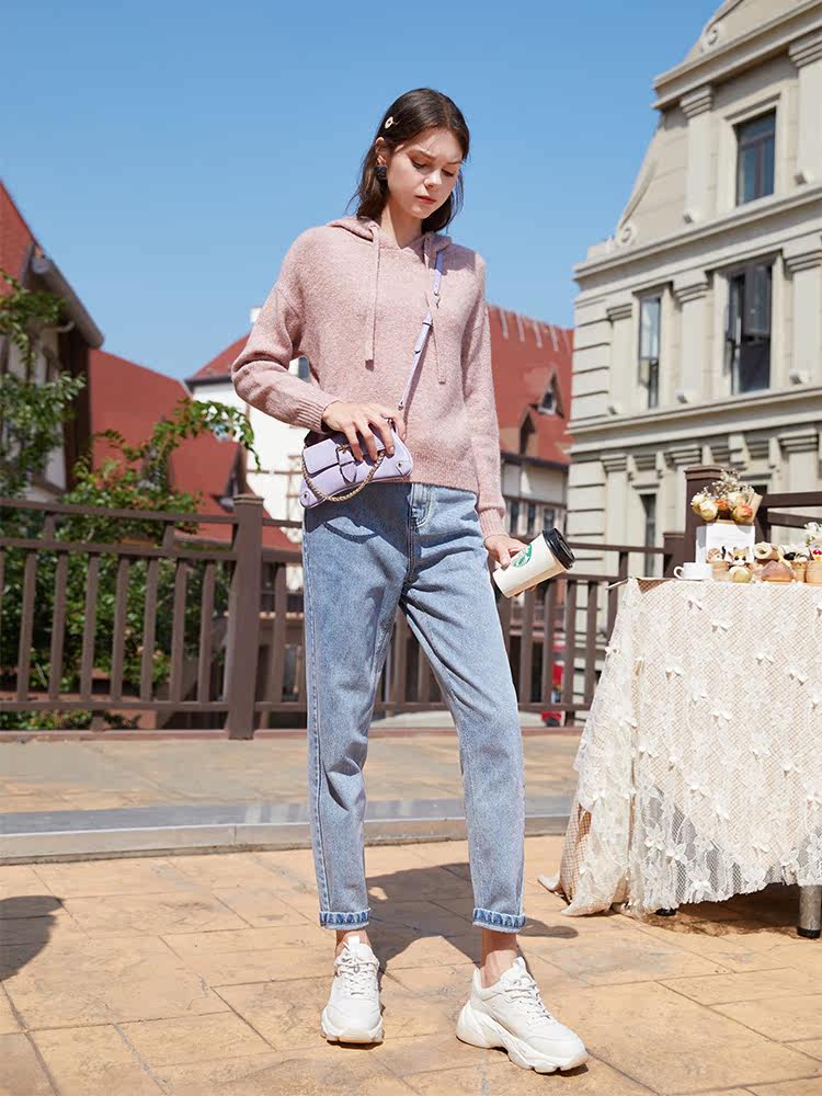 香影 Демисезонный свитер, трикотажная толстовка с капюшоном, оверсайз, 2020, в западном стиле, в корейском стиле