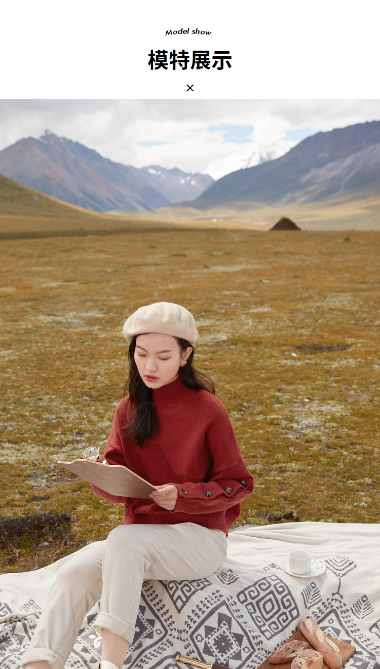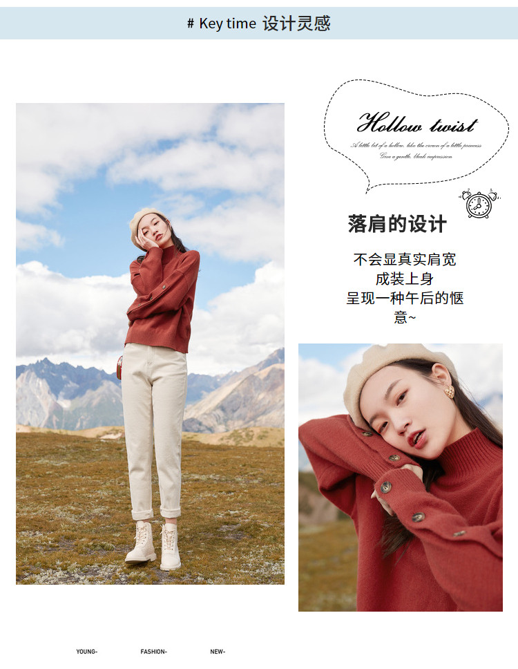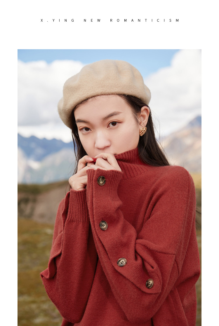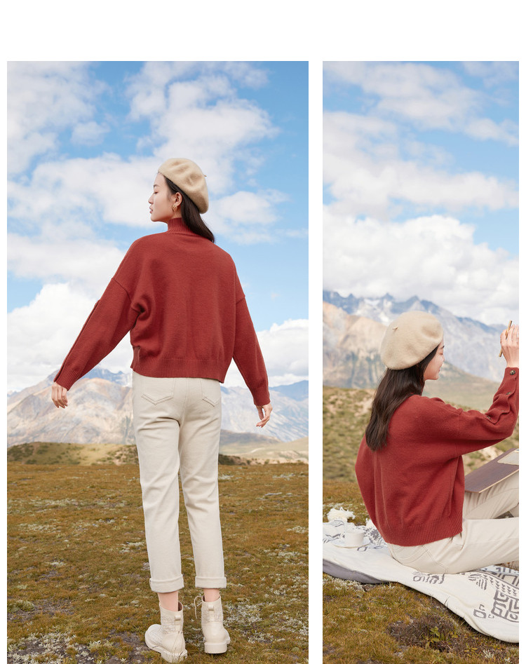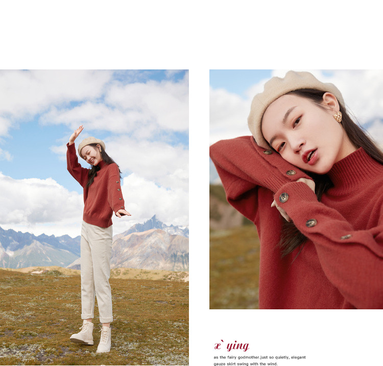 香影 Демисезонный красный трикотажный свитер, 2020, в корейском стиле, оверсайз, в западном стиле